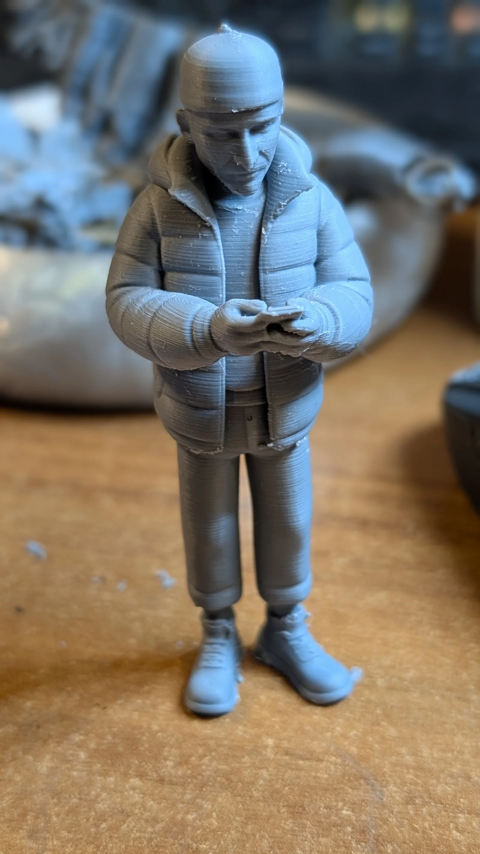 Bạn đang tìm kiếm một món quà độc đáo hoặc một mô hình thú vị để trưng bày trên bàn làm việc? Mô hình nhân vật nam mặc áo phao (jacket) đang sử dụng điện thoại này chính là lựa chọn tuyệt vời cho các tín đồ đam mê in 3D. Với thiết kế phong cách hiện đại, mô hình tái hiện lại hình ảnh một người đàn ông trẻ trung, năng động trong trang phục mùa đông, mang đến cảm giác rất gần gũi và đời thường cho không gian sống của bạn.