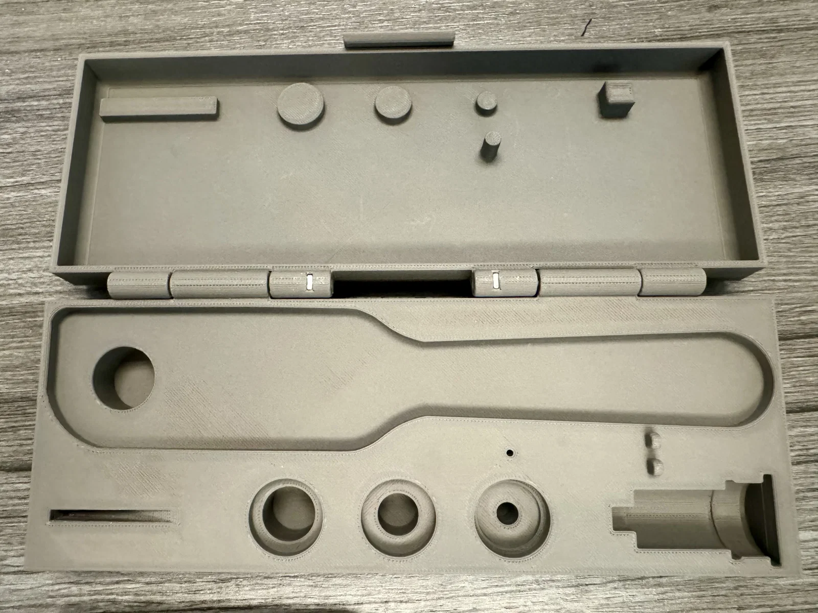 Không cần dùng support, bạn chỉ cần in từng phần với mặt ngoài lớn nhất của hộp úp xuống bàn in. Mình dùng nhựa PETG để đảm bảo độ bền nhiệt, dùng PLA vẫn ổn nếu bạn không định để hộp dụng cụ ngoài trời nắng mùa hè (hoặc bỏ quên trong xe hơi).