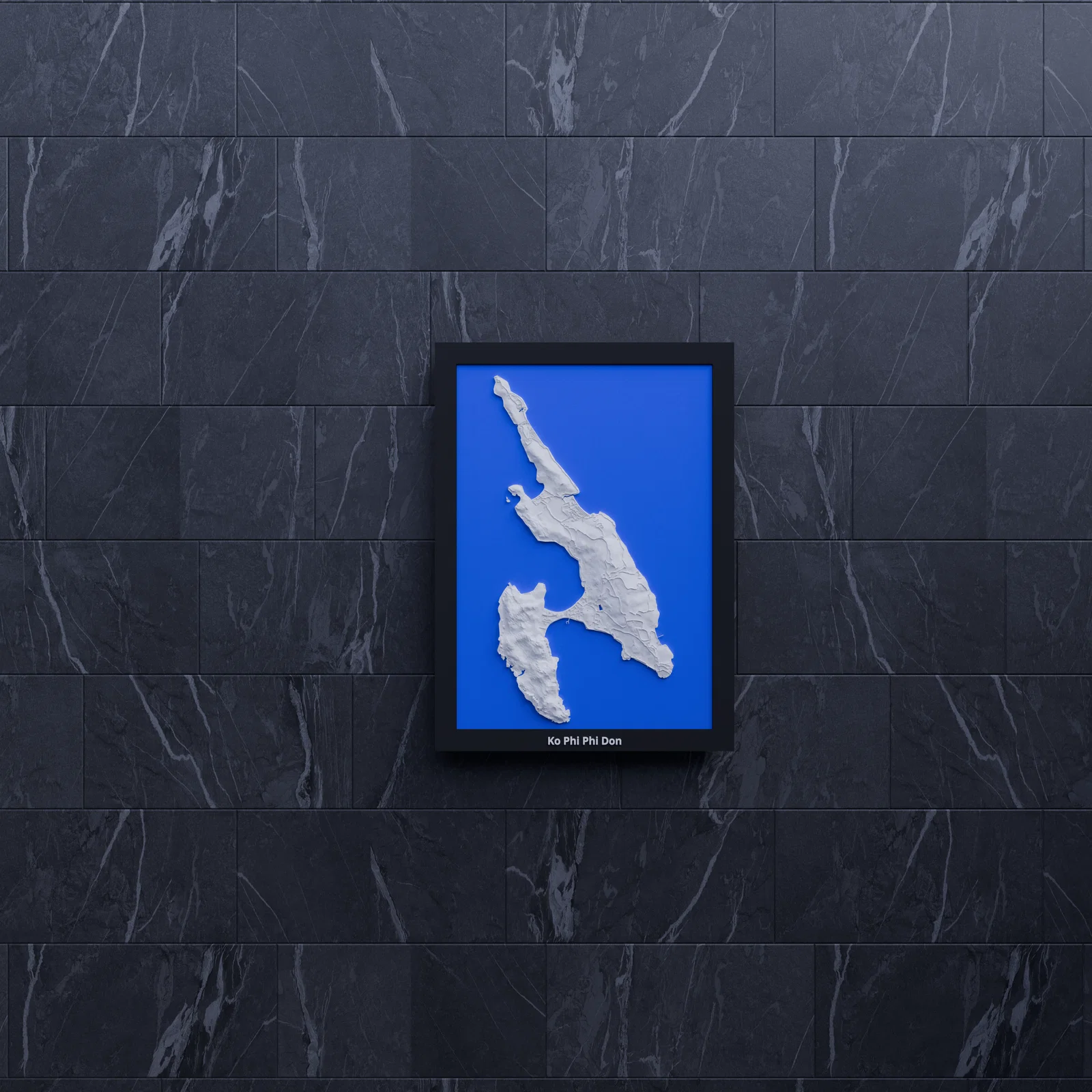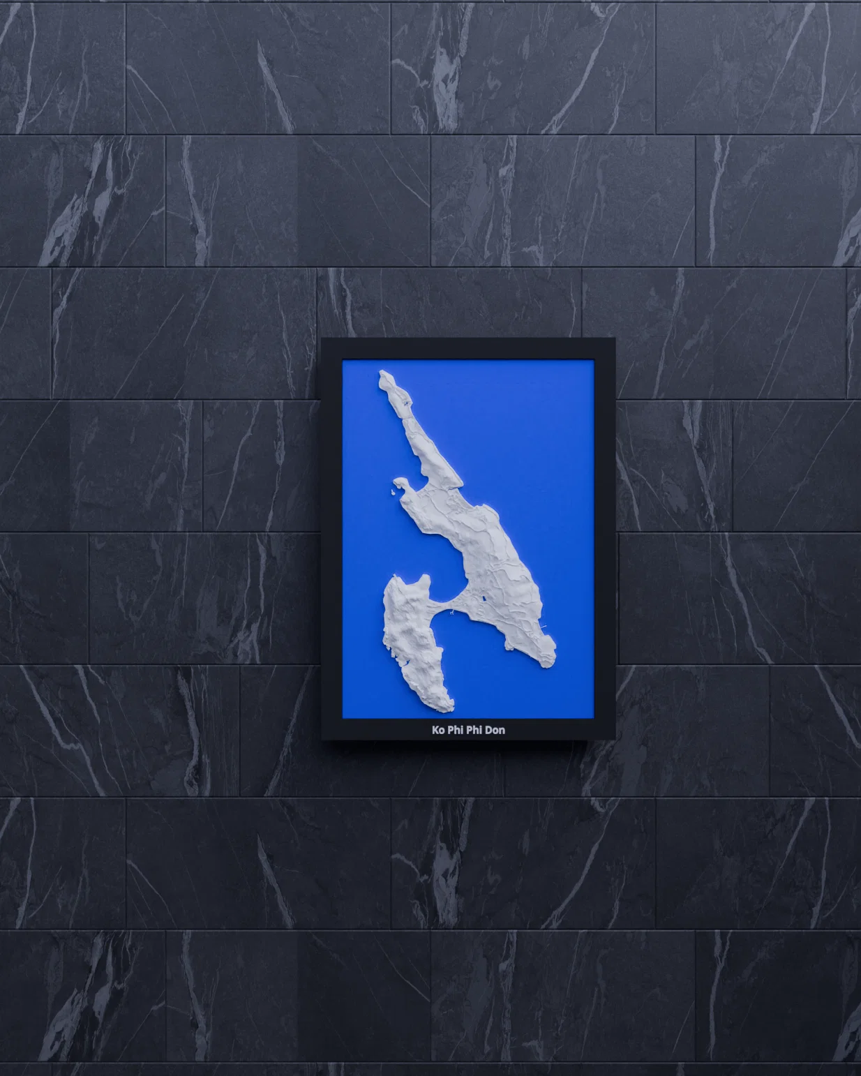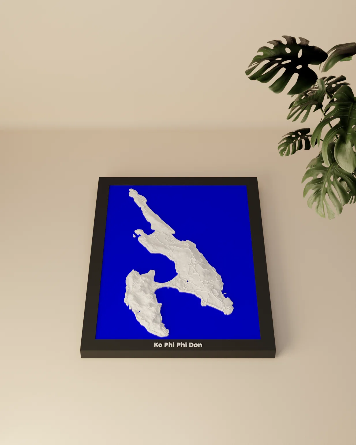 Lưu giữ vẻ đẹp của cảnh quan Ko Phi Phi Don với mô hình địa hình 3D thu nhỏ cực chi tiết. Tái hiện hoàn hảo từ dữ liệu thực tế, rất phù hợp để làm quà tặng hoặc trang trí.