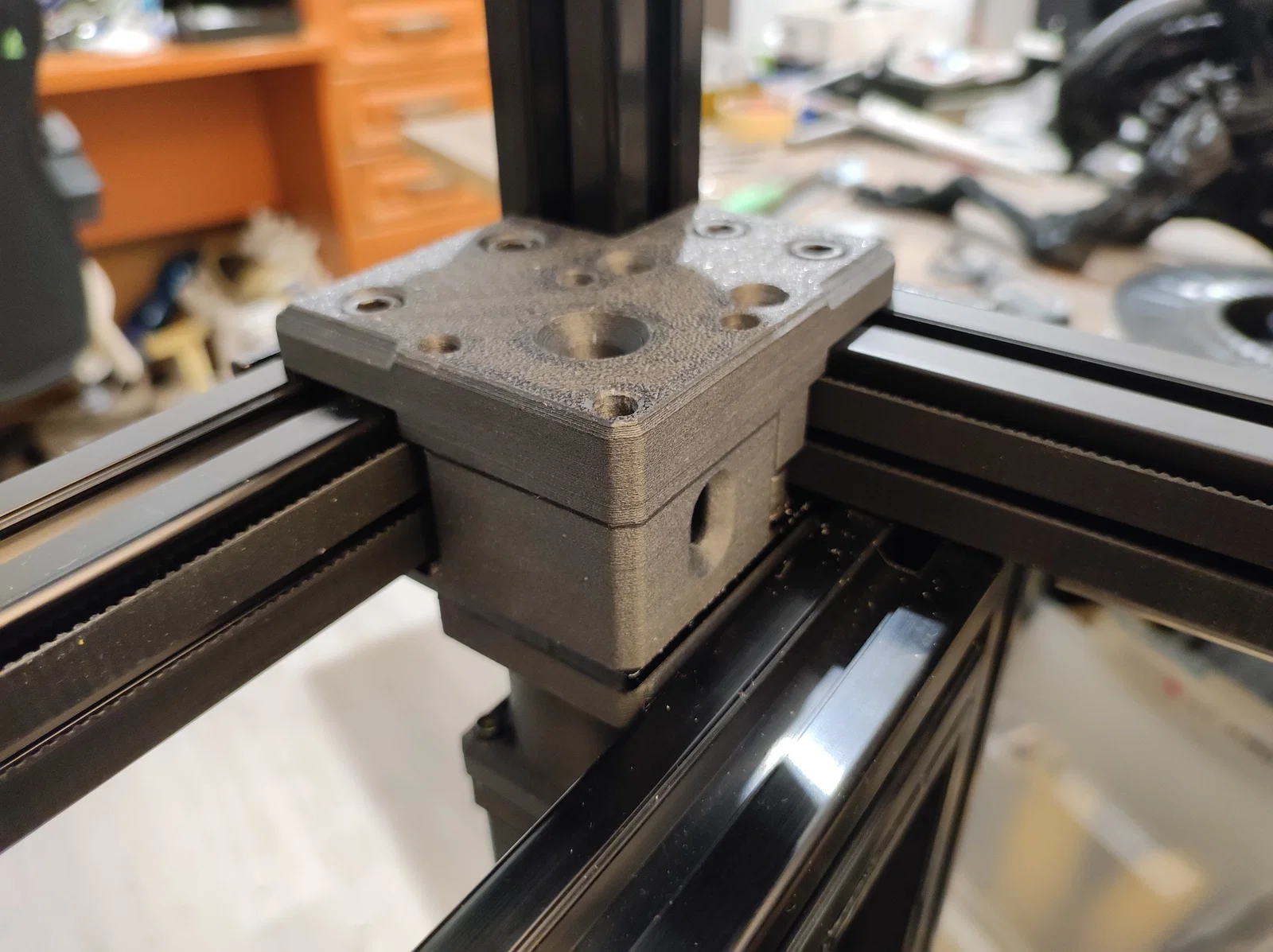Ngoài ra, mình còn dùng nó như điểm cố định cho khung phụ thẳng đứng (vertical subframe). Việc này giúp mình dùng được thanh ray Y dài hơn vì không cần đến mấy cái ke góc ở phía trước khung phụ nữa.