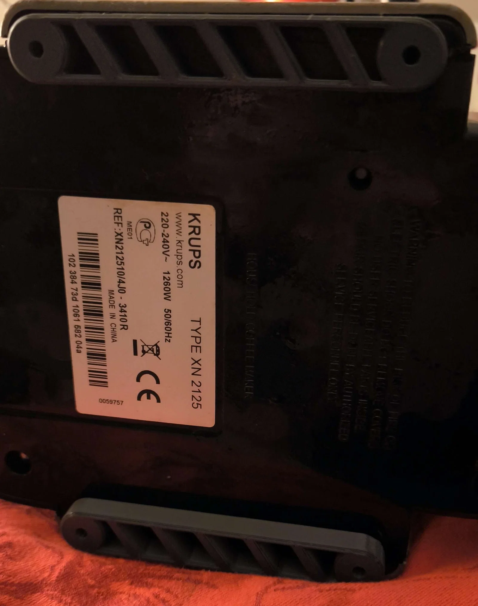 Về mô hình này Chiếc máy KRUPS Essenza Automatic của mình bị rò rỉ nước khi pha cà phê mà mình vẫn chưa tìm ra chính xác là nước chảy từ đâu ra. Để giúp nước thoát ra ngoài dễ dàng hơn và không bị đọng lại bên dưới thiết bị, mình đã thiết kế bộ chân đế này để nâng máy cao thêm 1 cm.