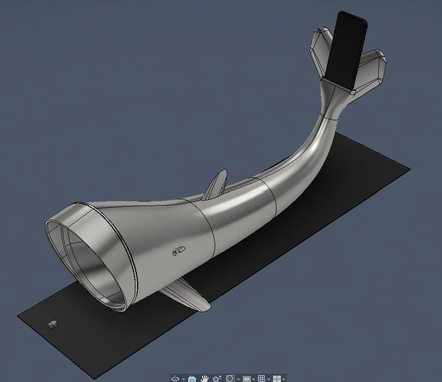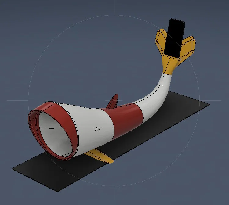 Đây là dự án mà con trai tôi đã thực hiện cho bài thi GCSE năm ngoái, với yêu cầu thiết kế và chế tạo một chiếc loa khuếch đại âm thanh thụ động (passive amplifier). Sau khi thử nghiệm nhiều kiểu dáng khác nhau, cháu nhận thấy thiết kế ống loe dần đều mang lại chất lượng âm thanh tốt nhất. Tôi thấy phiên bản in 3D này của cháu để không cũng phí, nên đã tinh chỉnh lại một chút để biến nó thành một tác phẩm nghệ thuật điêu khắc... và thế là "Moby" ra đời.