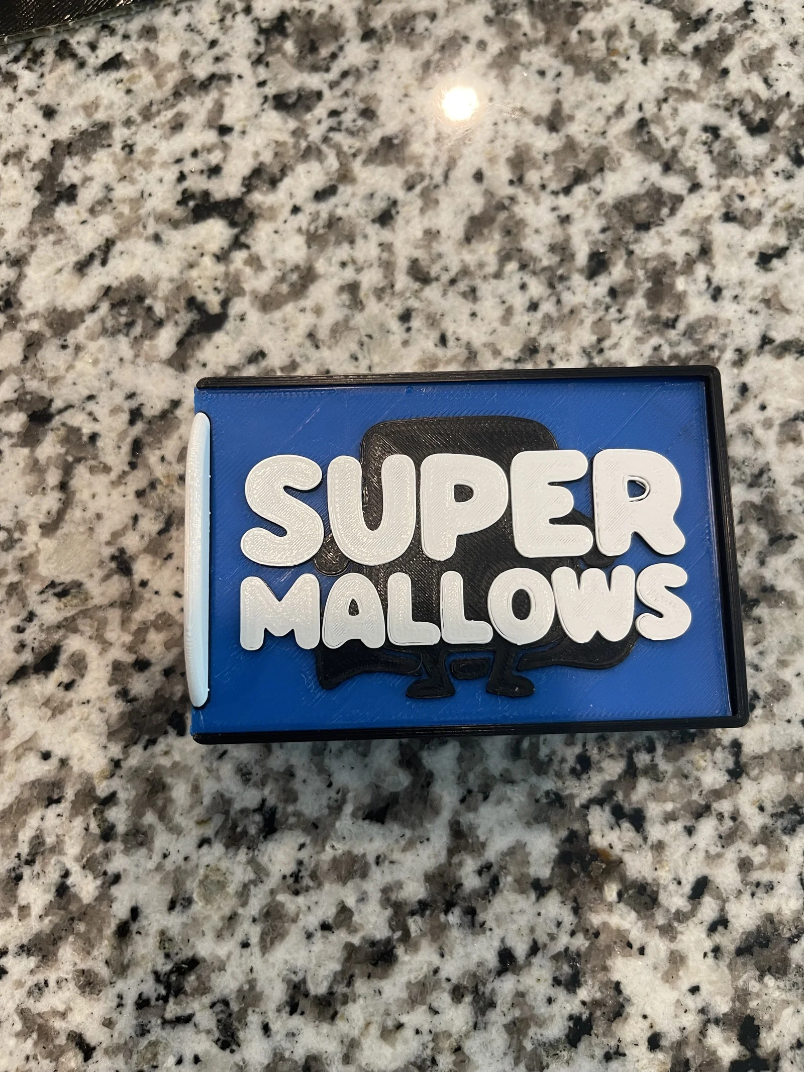 Đây là hộp đựng bài cho trò chơi SUPERMALLOWS. Một tựa game quá tuyệt vời và rất xứng đáng có một chiếc hộp đựng chắc chắn, tiện lợi cho cả người chơi lẫn người in! Hộp được thiết kế cứng cáp với nắp đậy có khóa cố định. IN RẤT DỄ. KHÔNG CẦN SUPPORTS. Nhớ kiểm tra kỹ phần thiết lập đổi màu trong phần mềm slicer của bạn nhé.