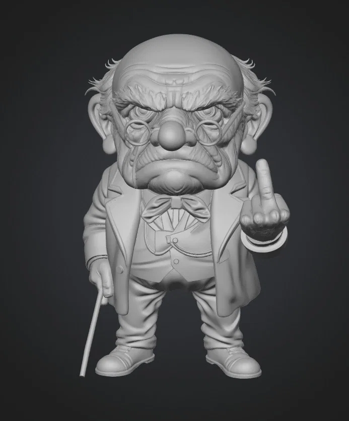 Mô hình 3D ông già cáu kỉnh đang giơ ngón tay giữa