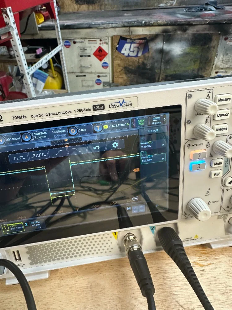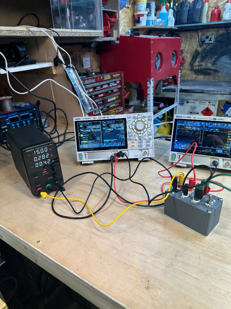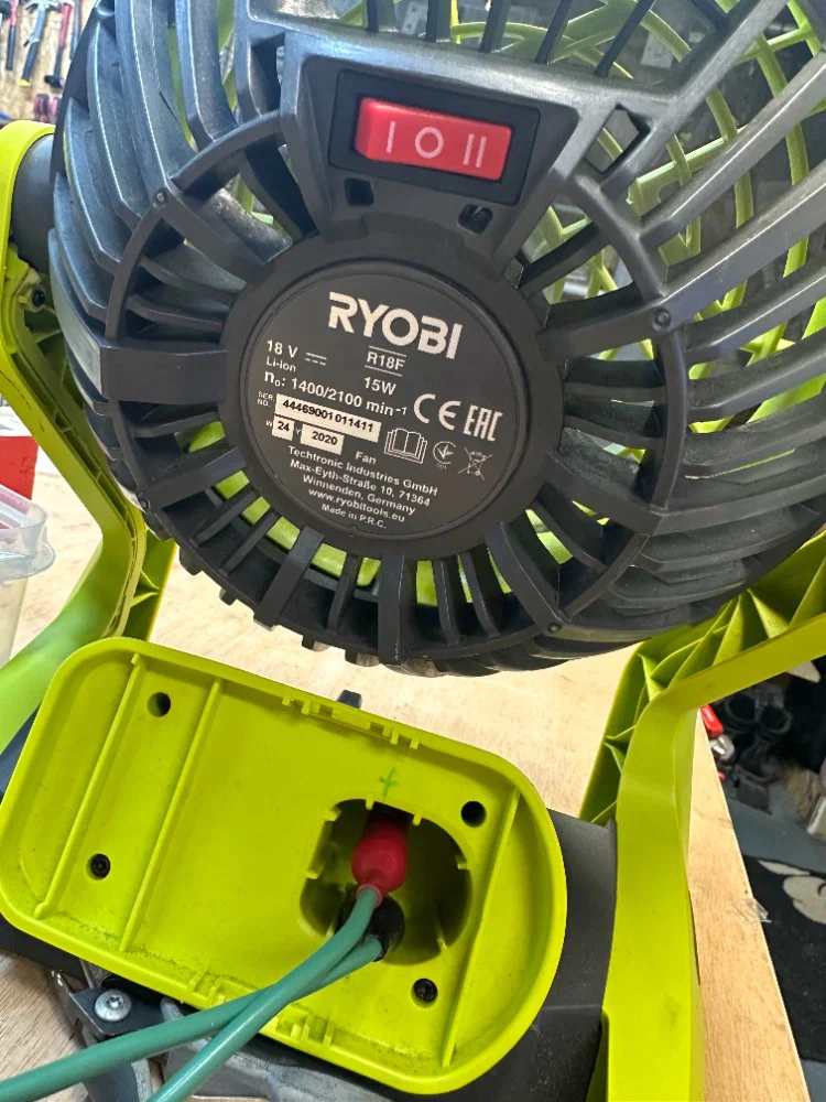 Các hình ảnh minh họa cho thấy một chiếc RIGOL DG822 pro đang điều khiển quạt Ryobi 18V quay hai chiều để làm demo.