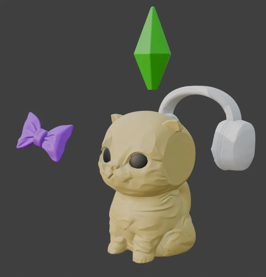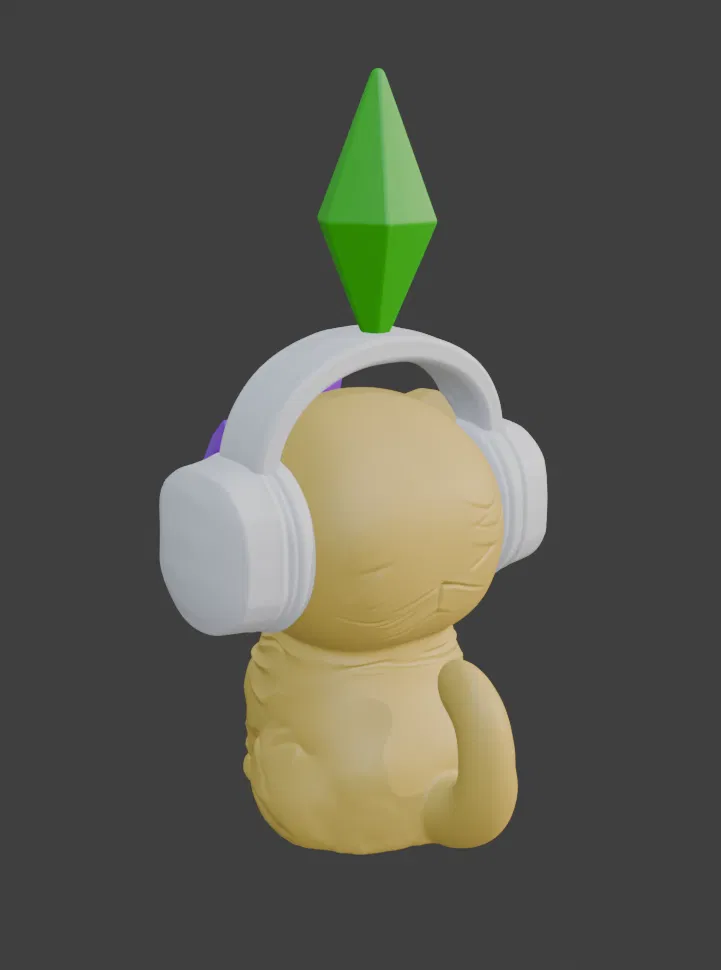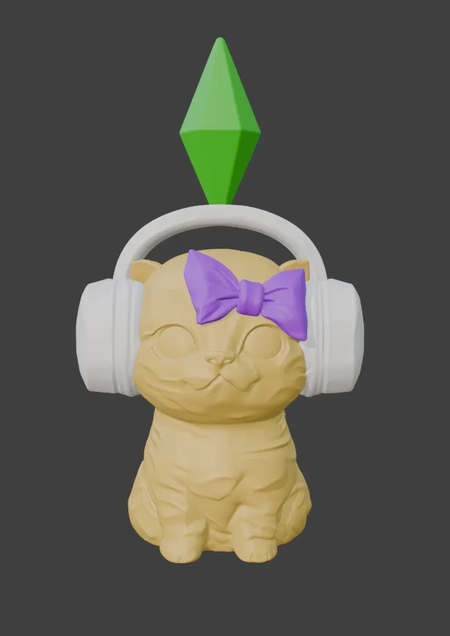 Mô hình chú mèo từ meme Sims huyền thoại với tai nghe và viên pha lê trên đầu. Thiết kế được tối ưu hóa, chia thành nhiều phần giúp bạn dễ dàng sơn màu và lắp ráp. Sản phẩm lý tưởng cho người hâm mộ trò chơi Sims và những người yêu thích in 3D.