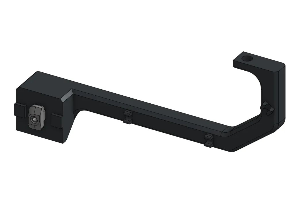 Một giá đỡ camera trước không cần hỗ trợ, được thiết kế để gắn liền với ray 3030 một cách liền mạch. Thiết kế bao gồm một T-Nut có thể in 3D, tối ưu hóa cho việc cố định an toàn bằng một vít 3mm—(bạn có thể sử dụng một trong những vít dự phòng từ bộ Prusa của bạn).