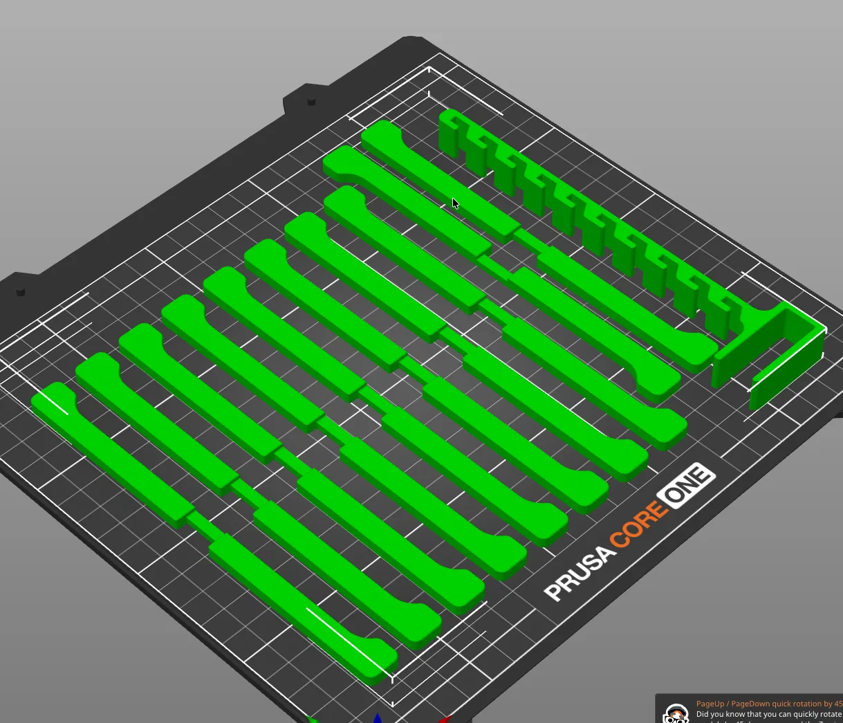 Cách in: In 10 cái móc với mặt phẳng nằm dưới, không cần support. In một cái giá đỡ cũng với mặt phẳng nằm dưới, sau đó móc chúng lại với nhau. Tôi có dùng thêm một ít keo cho chắc chắn, dù thực ra có thể không cần thiết.