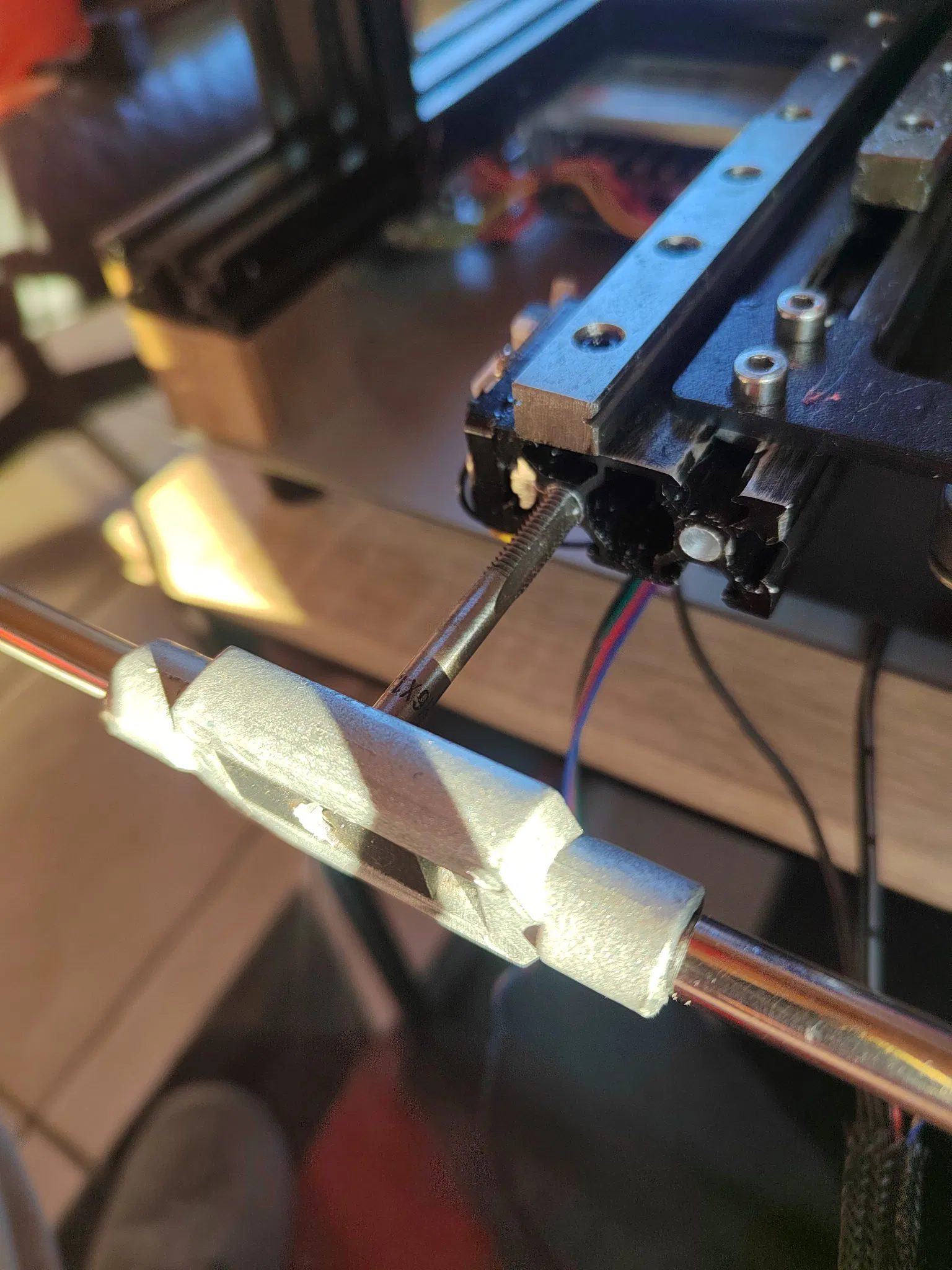 - Chuẩn bị khoan ren phần sau của thanh profile Y (cá nhân tôi đã sử dụng m6, nhưng m5 cũng được)