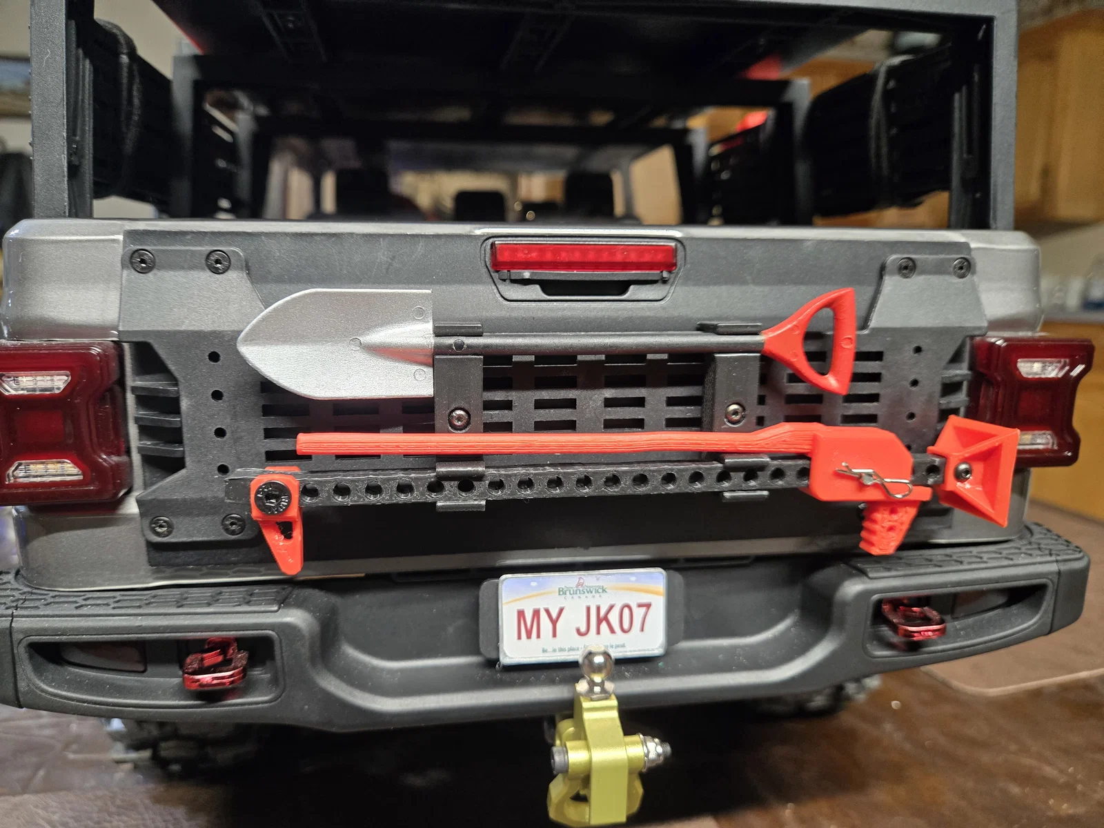 Đây là phụ kiện giá đỡ xẻng và kích cho Rlaarlo JK07, bắt vít trực tiếp lên khung gắn ở cửa sau bằng ốc 2mm. Bạn cần in 2 giá đỡ, sau đó khoan khung gắn và vặn vít 2x12mm vào. Phần xẻng và kích sẽ được cố định chắc chắn bằng khớp gài. Lưu ý, phần kích được in ở tỉ lệ 130% để vừa vặn với các dòng xe crawler tỉ lệ 1/7.