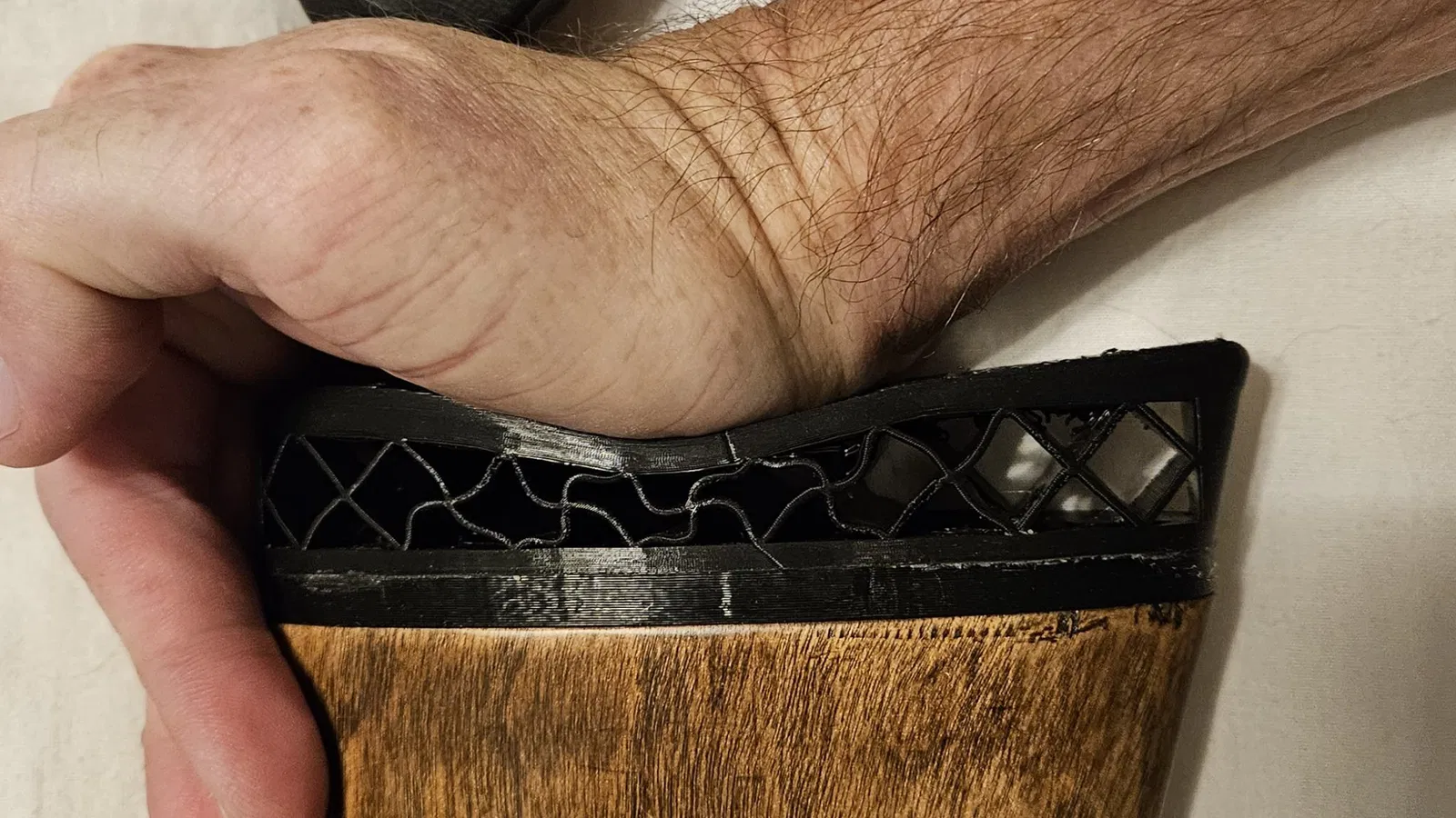 Phần trên của miếng đệm giảm chấn cần được in bằng TPU rất mềm. Tôi đã sử dụng NinjaFlex (độ cứng shore 85A). TPU có độ cứng shore 95A thông thường quá cứng và sẽ dẫn đến miếng đệm giảm chấn không uốn dẻo.