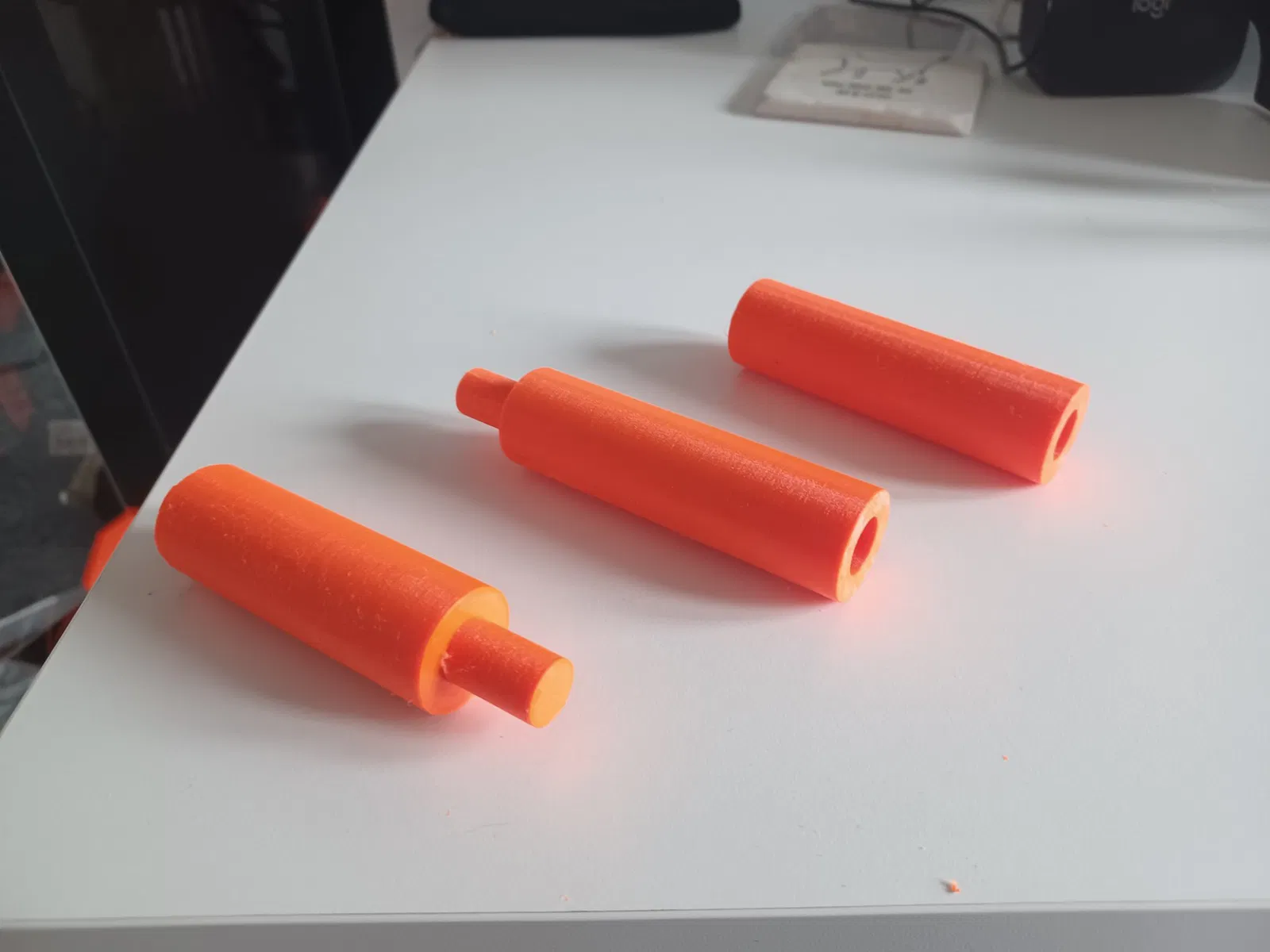 Có 3 tệp cho cái thanh: Đầu 1 (chốt); Đầu 2 (lỗ); và thanh giữa (cả chốt và lỗ) để cho phép xây dựng một cái thanh. Cũng có một tệp cho các giá đỡ thanh, có thể được vít vào bằng vít m5.