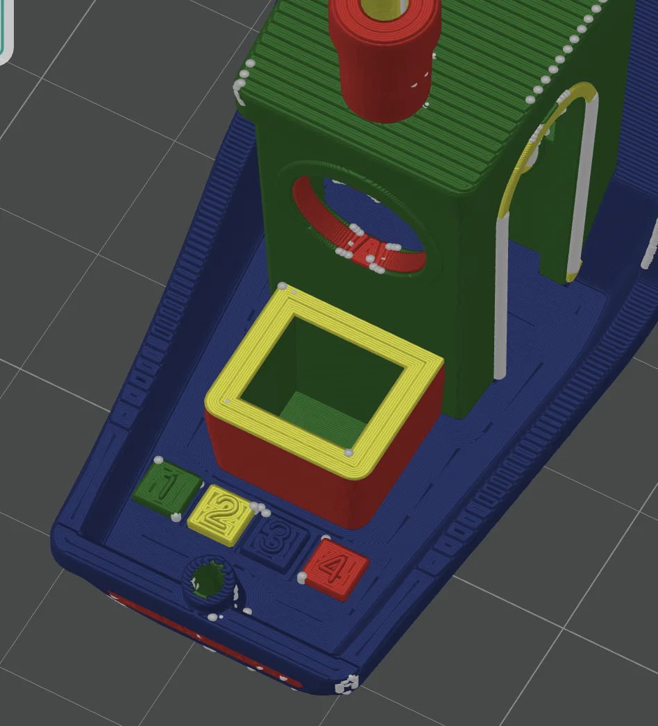 Anh em cứ in như in một chiếc Benchy bình thường thôi, chỉ cần chọn 4 màu khác nhau là được. Trong phần mềm slicer, anh em có thể tùy ý thay đổi màu sắc cho từng phần trong mục filament. File "Benchy_2" còn có thêm 4 ô vuông cho mỗi màu kèm nhãn dán, giúp anh em dễ dàng nhận biết và kiểm tra màu sắc nào tương ứng với vị trí nào.