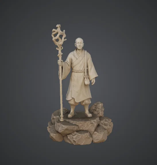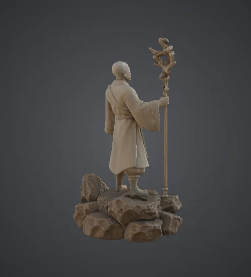 Thiền sư lữ hành cầm gậy – Mô hình nhân vật giả tưởng tối giản