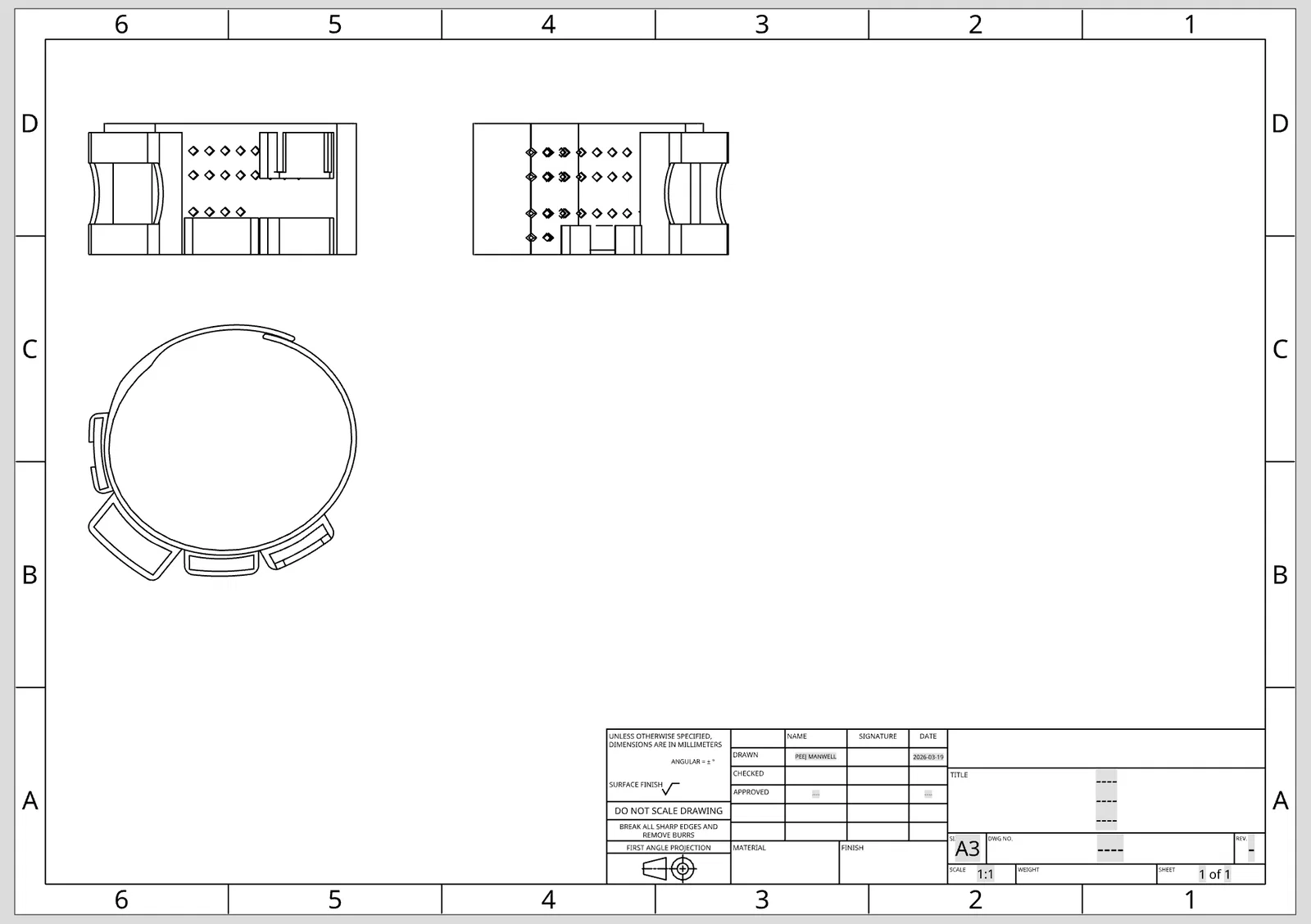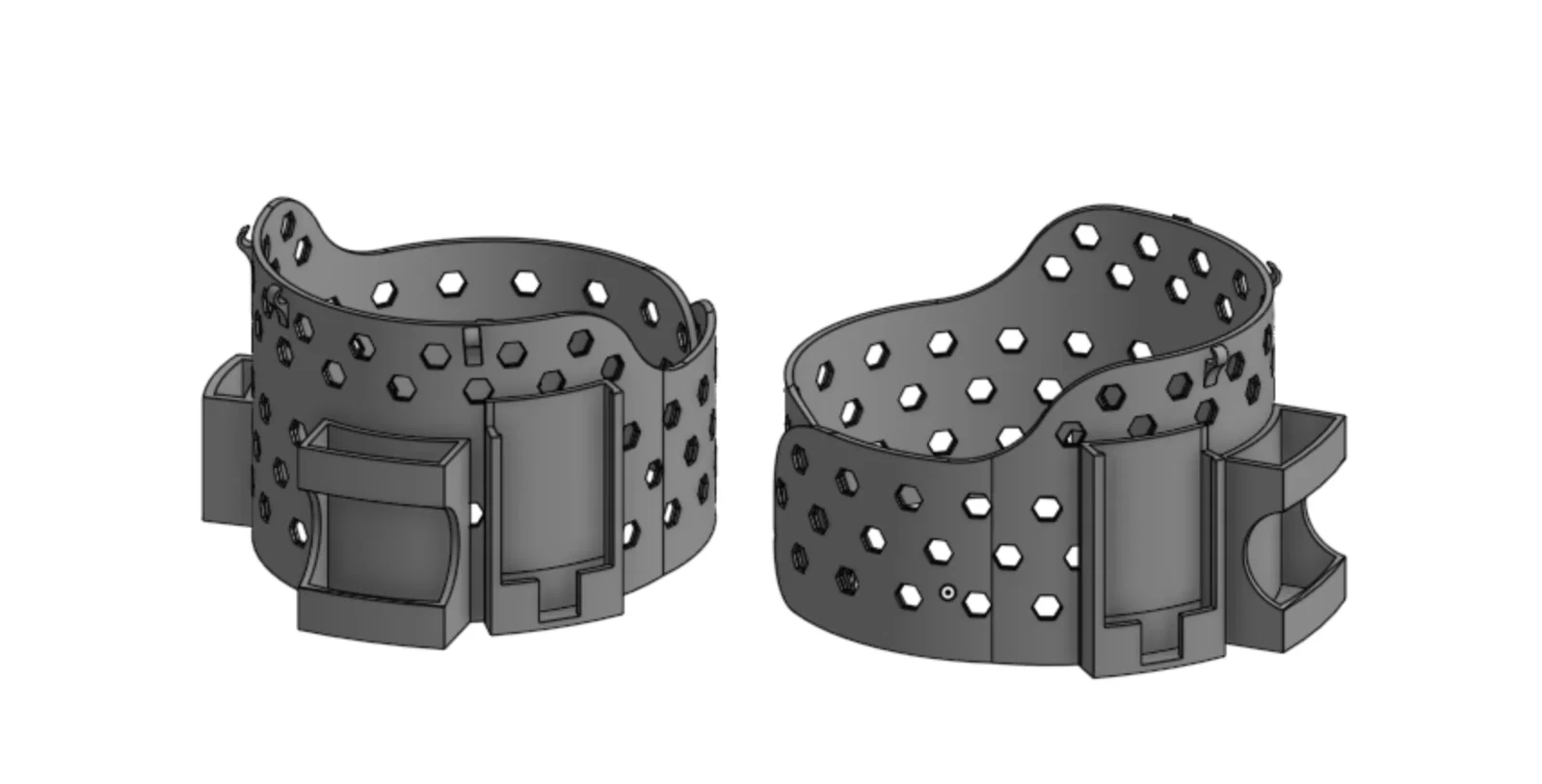 Phần vỏ in 3D giúp cố định các linh kiện điện tử một cách chắc chắn, đồng thời vẫn duy trì luồng không khí và sự thoải mái khi sử dụng trong thời gian dài. Đây là lựa chọn lý tưởng cho việc thử nghiệm, theo dõi chuyển động hoặc tạo mẫu các hệ thống cảm biến đeo trên người. Thiết kế này hỗ trợ ghi dữ liệu, kết nối không dây và khả năng mở rộng trong tương lai với các cảm biến hoặc module bổ sung.