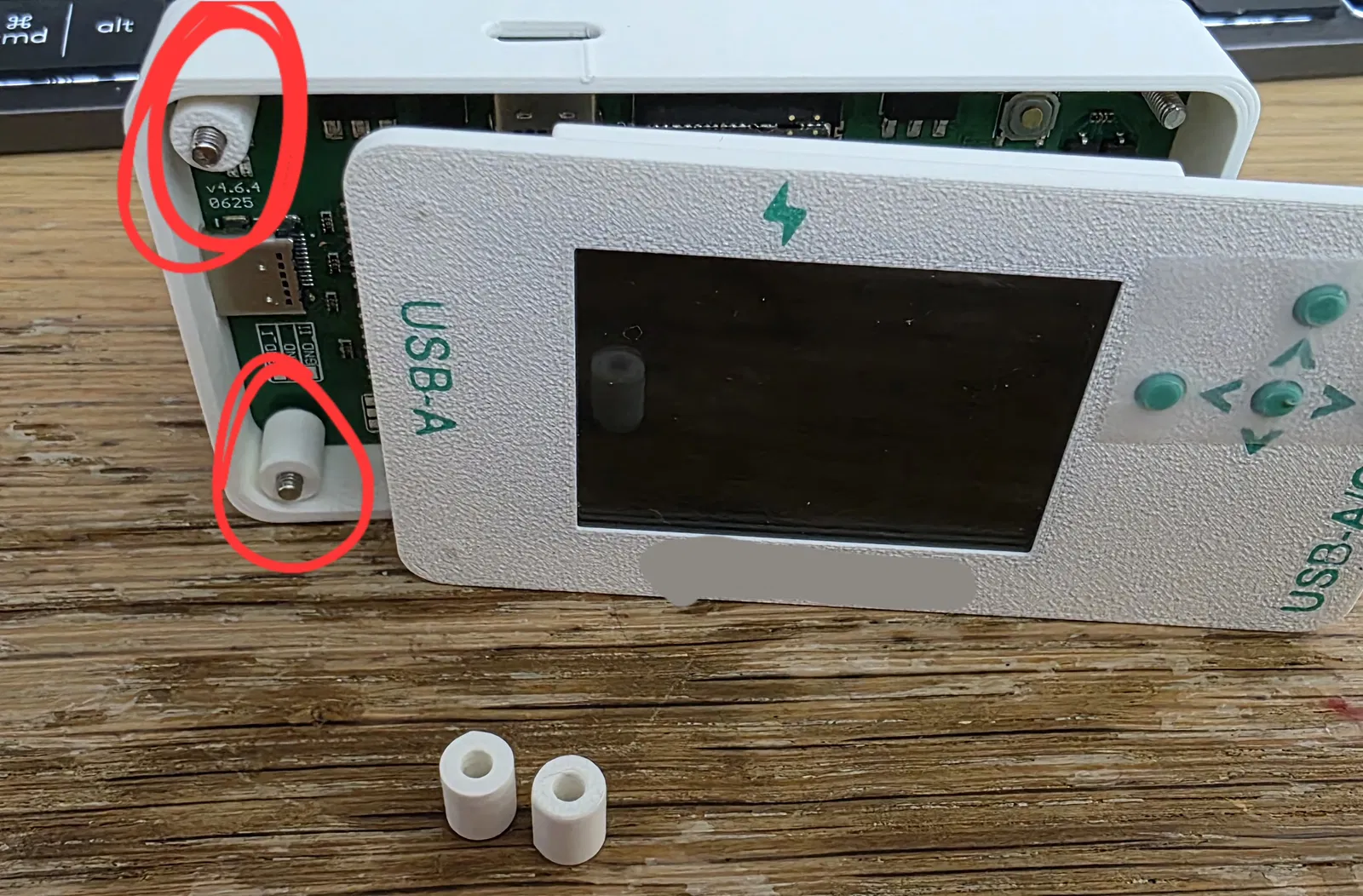 - Mở hé ra một chút, ĐẨY bảng mạch sang phải, chèn miếng đệm.