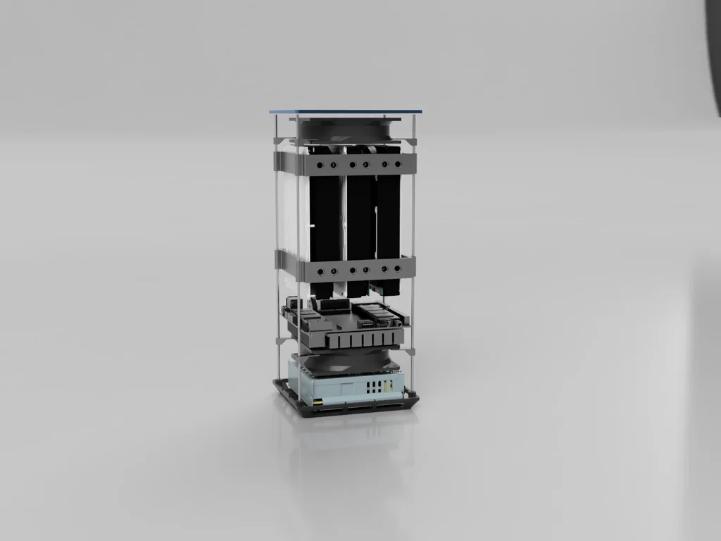 Đây là mẫu vỏ case NAS tất cả trong một dành cho máy tính bảng đơn SeeedStudio Odyssey (hay còn gọi là re_computer). Thiết kế này tận dụng phần vỏ nhôm gốc đi kèm với máy tính. Case có thể chứa bộ nguồn, bo mạch Odyssey SBC, hai quạt 92mm và tối đa ba ổ cứng HDD 3.5 inch. Case này khá cao - gần 30cm (31cm với phần nắp mở rộng), nhưng cấu trúc rất ổn định. Toàn bộ khung được cố định bằng bốn thanh ren M3, vì vậy các bộ phận in 3D (ngoại trừ giá đỡ ổ cứng) không phải chịu nhiều tải trọng.