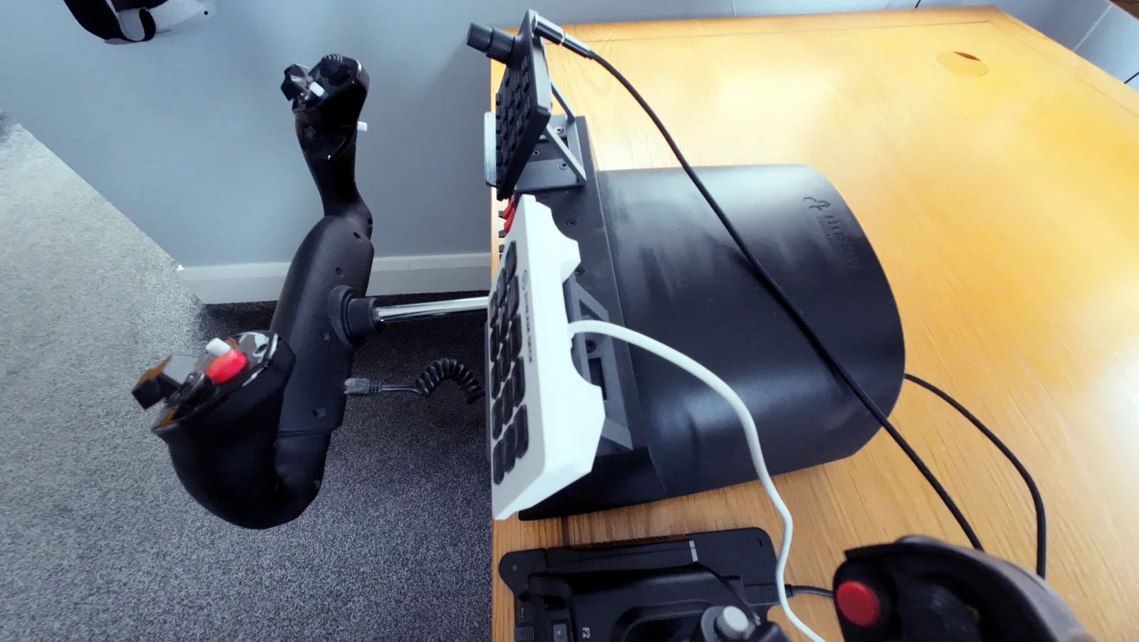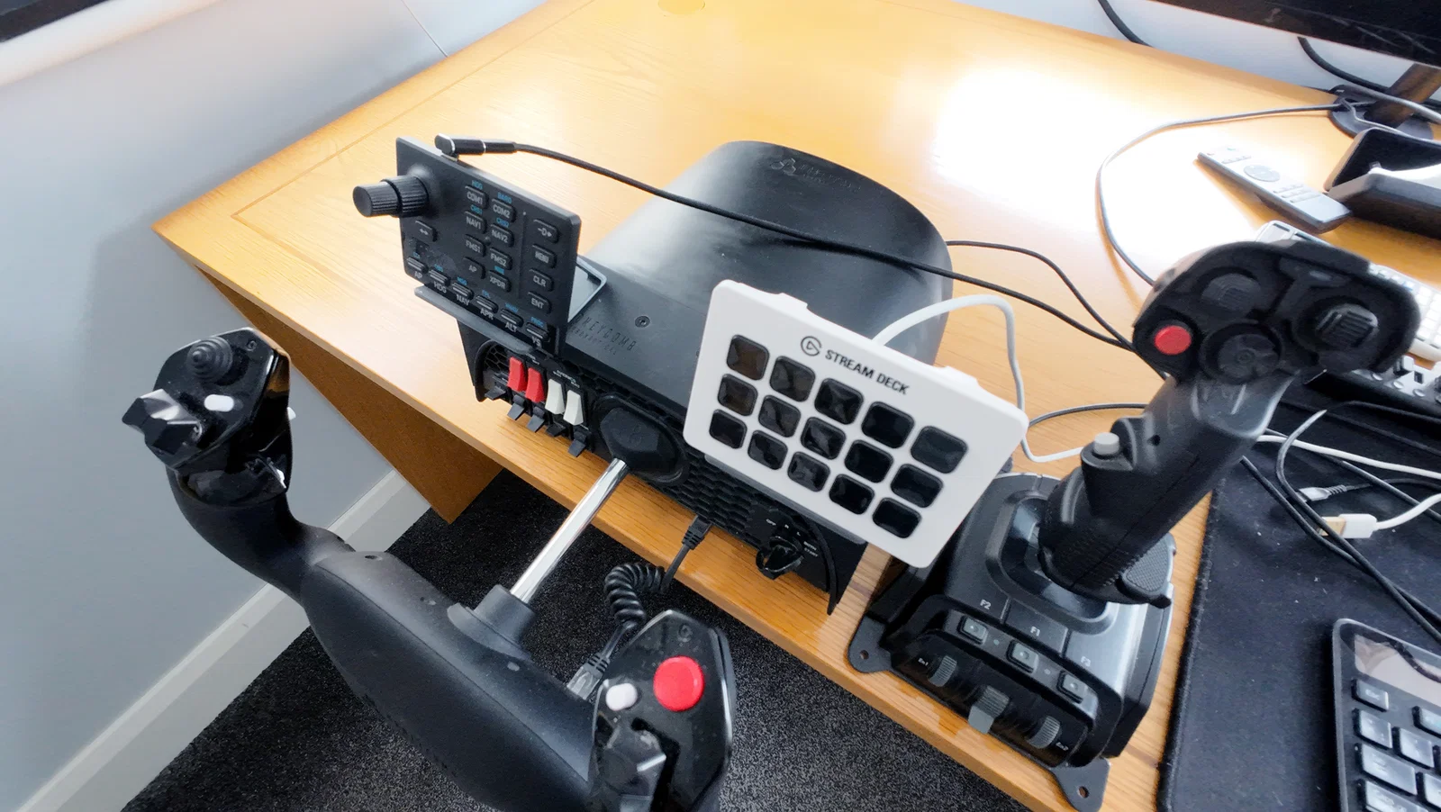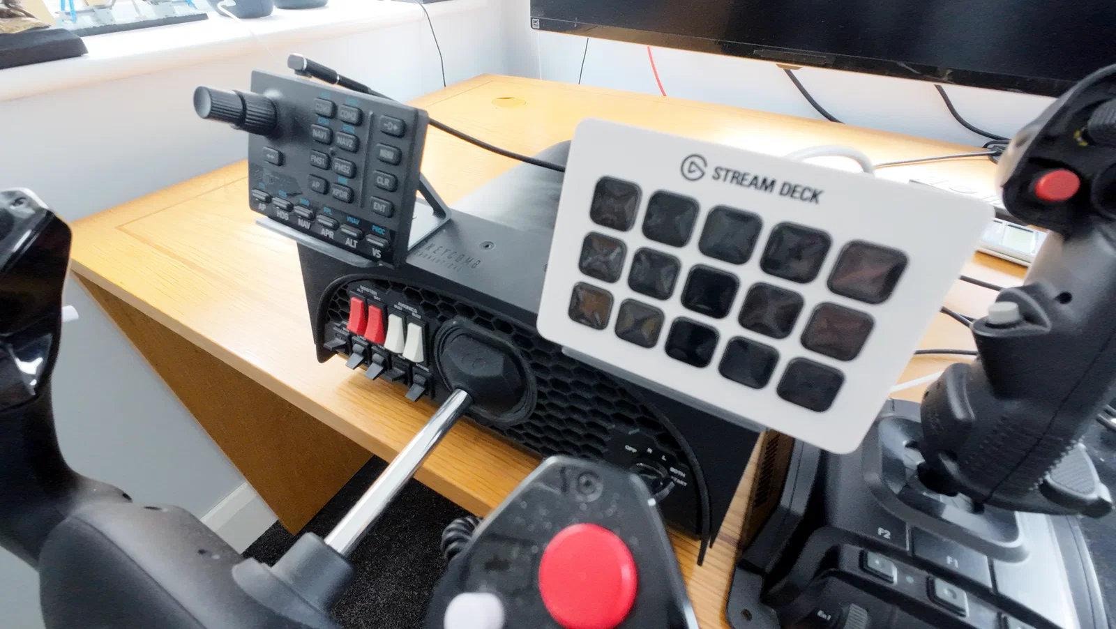 Đây là một giá đỡ nhỏ gọn dùng để gắn vào bộ khung Honeycomb hoặc Logitech, giúp bạn cố định Stream Deck, Octavi IFR1 hoặc bất kỳ thiết bị nào khác. Thiết kế này giúp bạn dễ dàng thao tác với các thiết bị trong khi bay mà không cần phải đặt trên đùi hay tìm chỗ trống trên bàn làm việc vốn đã bừa bộn. Ngoài ra, giá đỡ còn hỗ trợ bạn nhấn nút và xoay núm điều khiển một cách thuận tiện hơn.