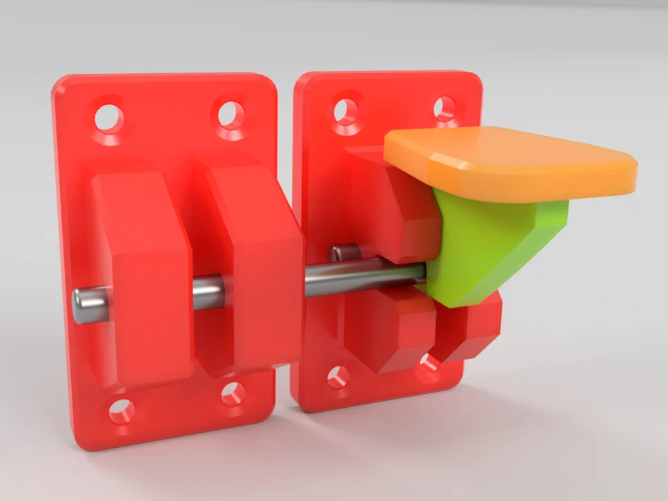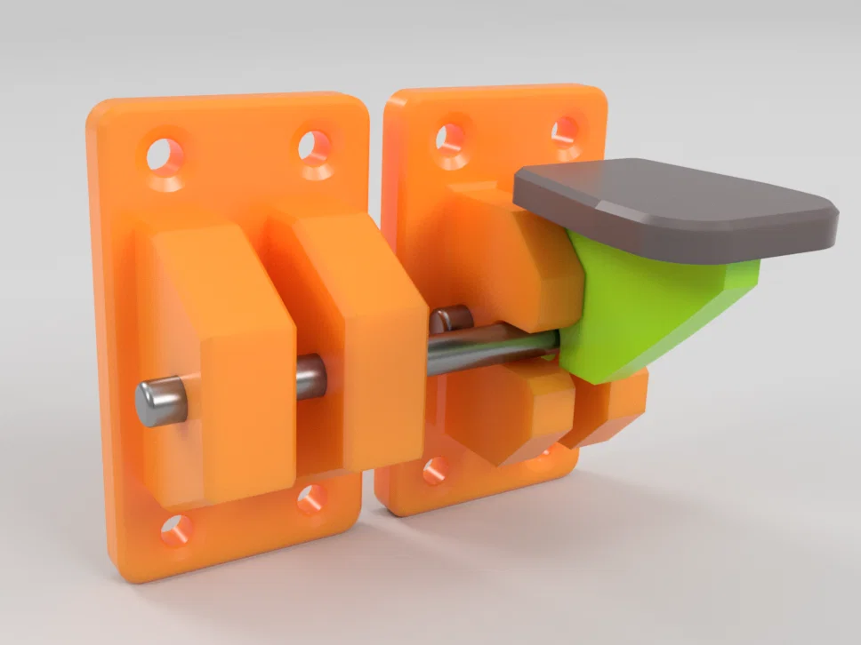 Chốt cửa tự động hoạt động dựa trên trọng lực. Cơ chế chốt xoay sử dụng một [TRỤC ĐƯỜNG KÍNH 6 mm]. Thiết kế dễ lắp ráp, chốt vát sẽ tự động rơi vào vị trí nhờ trọng lực để khóa chặt vào các bộ phận gắn trên tường—không cần lò xo.