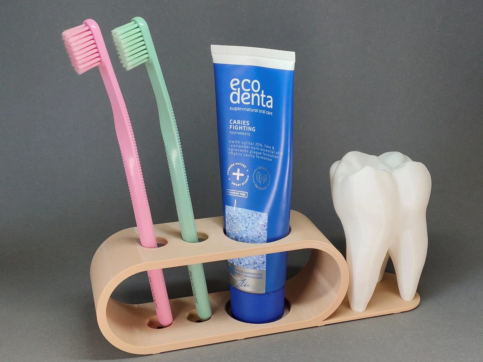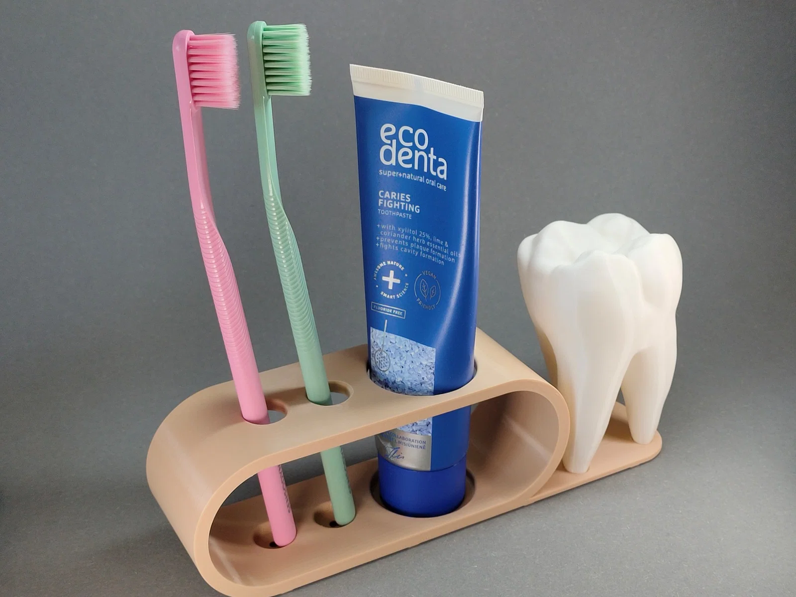 Bạn đang tìm cách để phòng tắm của mình trở nên gọn gàng và thú vị hơn? Mẫu giá đỡ bàn chải đánh răng (Toothbrush Stand) này chính là giải pháp hoàn hảo dành cho bạn. Với thiết kế sáng tạo lấy cảm hứng từ hình ảnh chiếc răng thật, sản phẩm không chỉ là một phụ kiện lưu trữ tiện ích mà còn là vật trang trí đầy phong cách trên bồn rửa mặt của gia đình. Bạn có thể dễ dàng sắp xếp gọn gàng từ hai đến ba bàn chải cùng với một tuýp kem đánh răng trong cùng một không gian nhỏ gọn, giúp việc vệ sinh cá nhân mỗi sáng và tối trở nên thuận tiện hơn bao giờ hết.