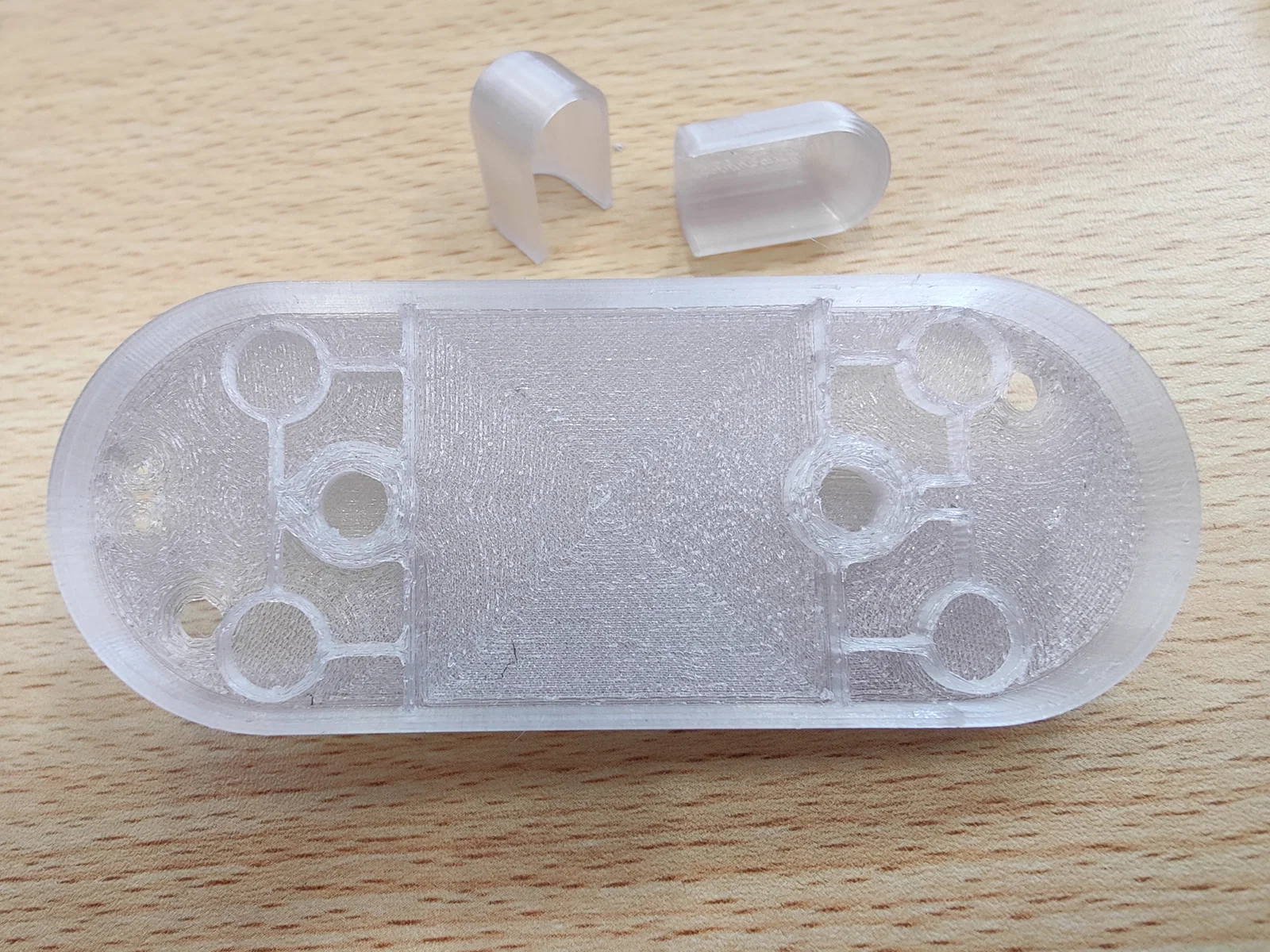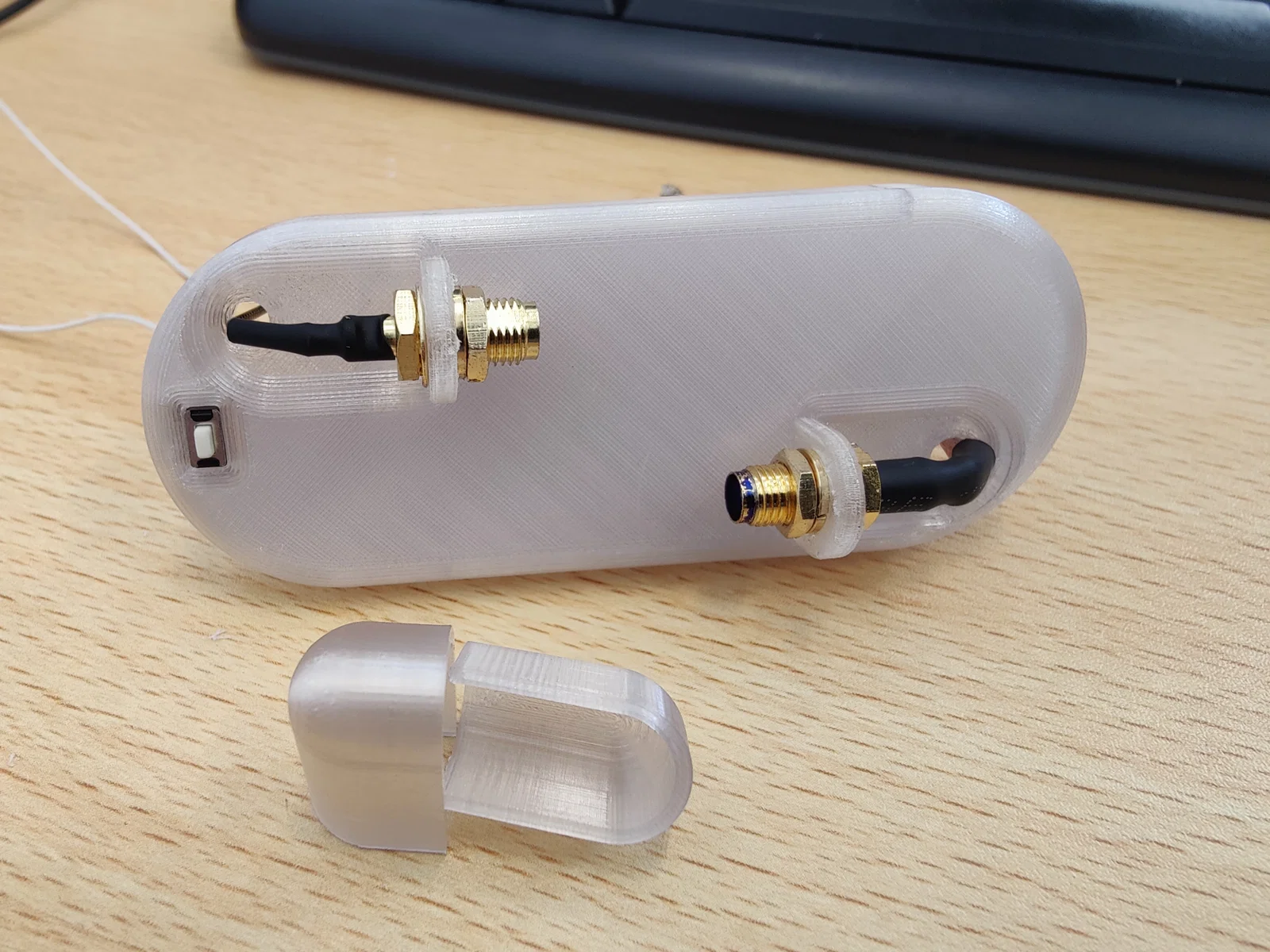 Khi in, cách tốt nhất là đặt mặt trong của nắp úp xuống bàn in. Sau khi lắp các đầu nối SMA, bạn có thể che lại bằng nắp đậy với một chút keo dán. Mình khuyên dùng chất liệu PETG hoặc tương tự với độ đặc (infill) 100% để đảm bảo phần đỡ đầu nối và toàn bộ thiết bị được cứng cáp nhất có thể.