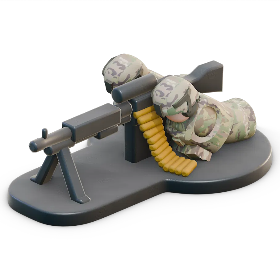 Mô hình đội súng máy M240 của Quân đội Hoa Kỳ dành cho trò chơi chiến thuật Down Range. Được kiểm tra kỹ lưỡng trên nhiều dòng máy in Prusa với nhựa PLA, đảm bảo chất lượng chi tiết và tối ưu thời gian in cho anh em đam mê wargame.
