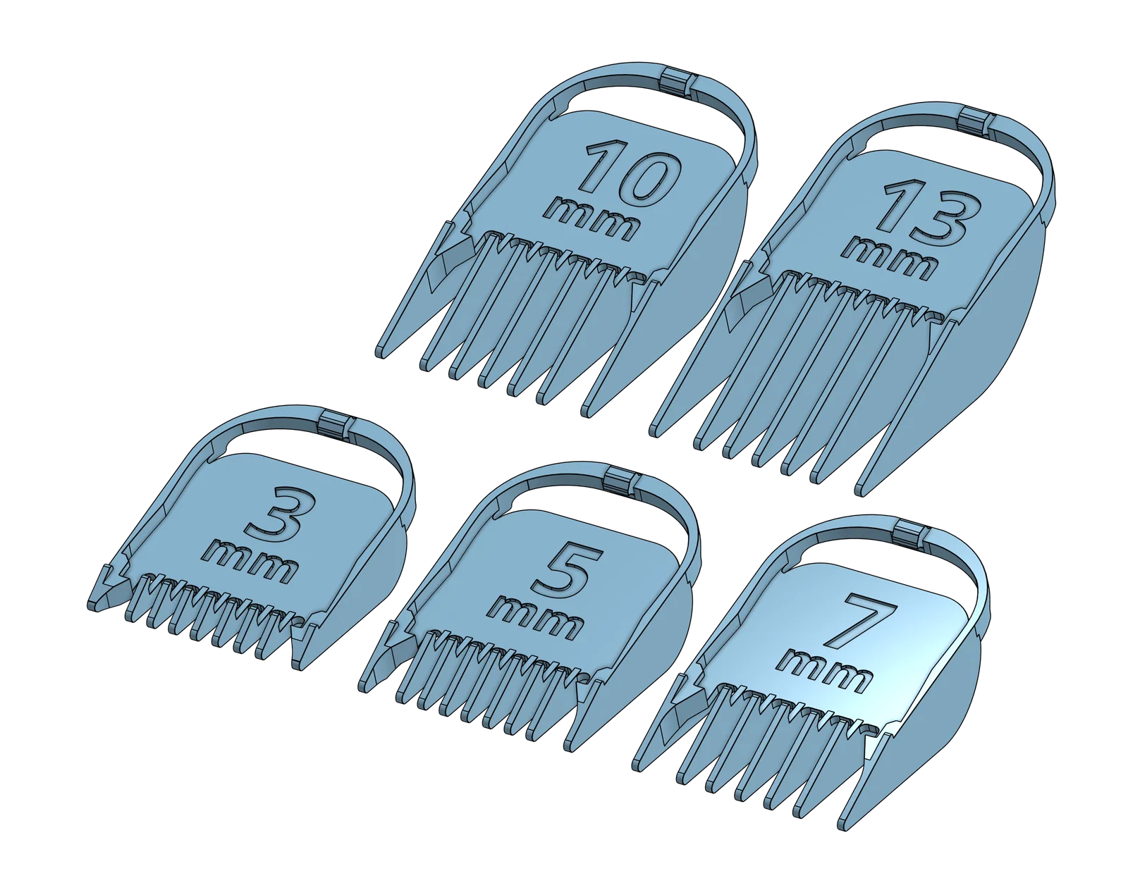 Bộ cữ lược này được thiết kế dựa trên thông số chuẩn của dòng Philips MG 3000, đảm bảo độ bám chắc chắn khi gắn vào máy. Dù bạn cần độ dài 3mm, 5mm, 7mm, 10mm hay 13mm, các tệp tin này đều đáp ứng đầy đủ, giúp việc cắt tỉa trở nên đồng nhất và chuyên nghiệp. Nhờ vào công nghệ in 3D, bạn có thể tự mình tái tạo lại những phụ kiện tưởng chừng đã mất đi, vừa tiết kiệm tiền bạc lại vừa thỏa mãn đam mê in ấn của chính mình.