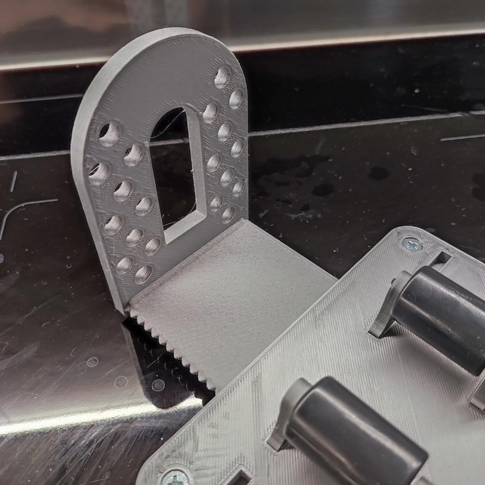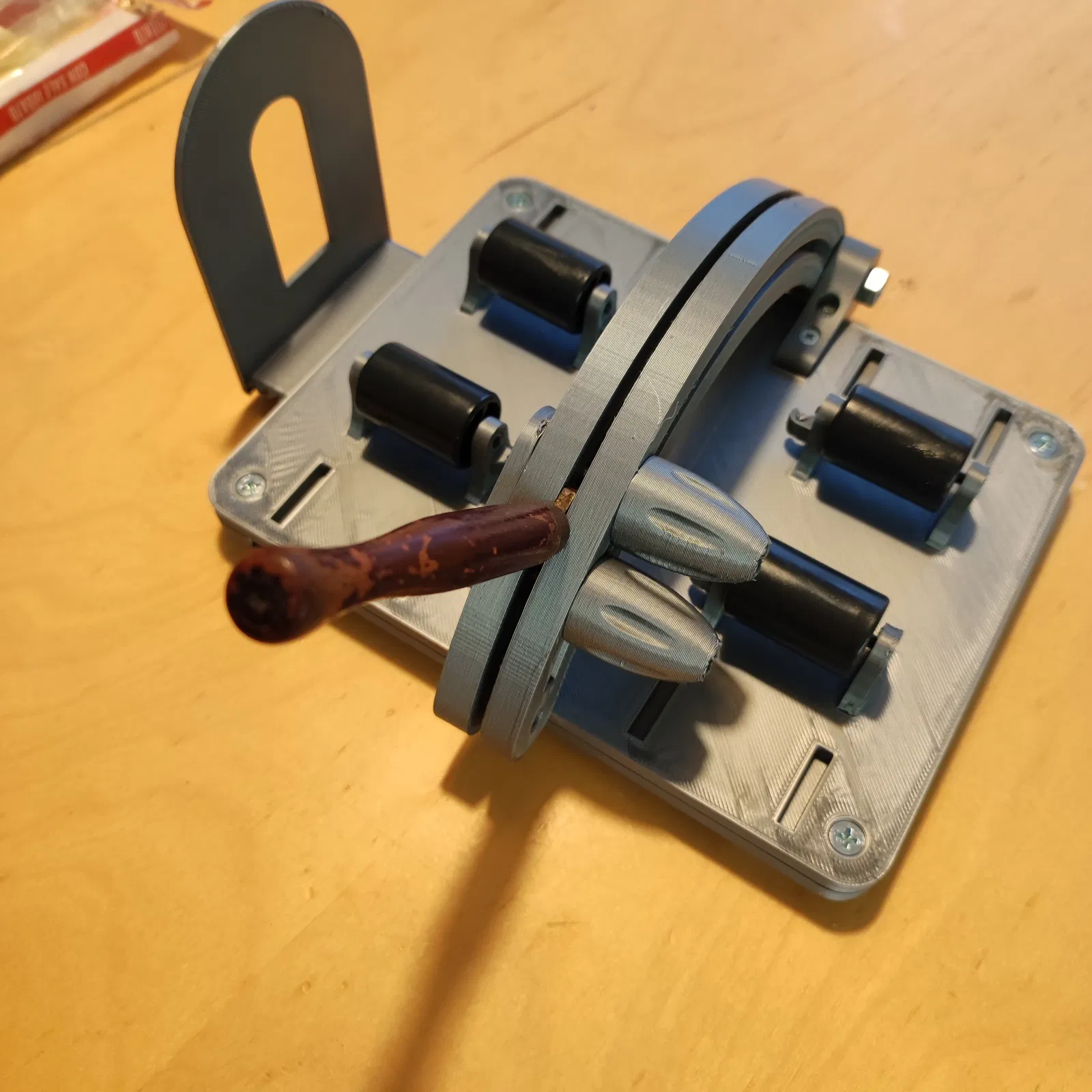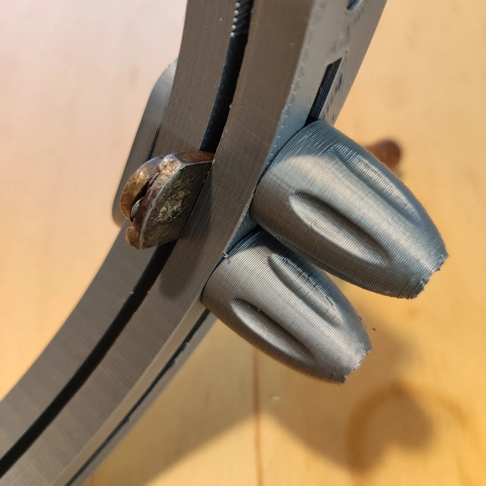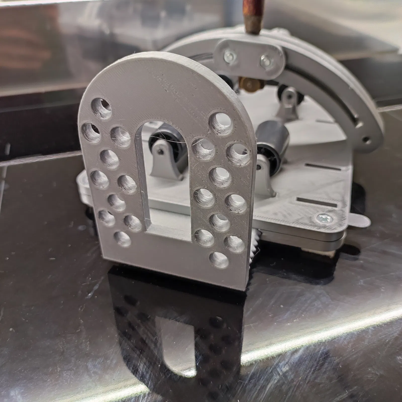 Đây là phần khung dùng để giữ công cụ khắc, giúp bạn cắt các vật dụng bằng thủy tinh có hình tròn. Đây là bản nguyên mẫu đầu tiên của mình. Mình đã cập nhật tấm ốp phía sau (xem file "Bottle_cutter_slider_02" và hình ảnh đính kèm), giờ đây nó cứng cáp hơn. Tuy nhiên, nó không dùng để ngăn chai thủy tinh bị trượt ngang mà chỉ đóng vai trò làm điểm tựa khi cắt. Mình cũng có đính kèm đường link các loại dây chun silicon để bạn gắn vào con lăn. Mình còn dự định cải tiến thêm nhưng đáng tiếc là không tìm thấy một số phần của dự án trên Tinkercad nữa, nên không rõ liệu có đủ thời gian để dựng lại bản vẽ gốc với các tham chiếu liên quan hay không. Vật liệu phần cứng cần thiết để lắp ráp: 4 x đai ốc M3 4 x vít đầu bằng M3x15 mm 6 x đai ốc M4 4 x vít đầu bằng M4x10 mm 2 x vít đầu lục giác M4x35 mm 1 x đai ốc M6 1 x vít đầu lục giác M6x45 mm 4 x chốt thép ⌀3 x 55mm * Dây chun silicon Lưu ý: Dự án trong hình sử dụng con lăn tháo từ máy vẽ plotter, còn file in đi kèm là các trụ hình trụ cùng đường kính, bạn cần lắp thêm chốt 3mm vào làm trục. Chốt này cần được bẻ cong và cố định vào móc bên hông trên một trong các giá đỡ con lăn. Mình khuyên bạn nên bọc cao su cho các con lăn để tăng độ bám lên thủy tinh. Bạn có thể dùng ống co nhiệt hoặc bọc in bằng nhựa TPU mềm (không có file in sẵn), nhưng tốt nhất vẫn là dùng dây chun silicon. Bạn có thể gắn thêm một tấm kim loại cứng vào điểm chặn bên hông để tăng độ tin cậy. Ngoài ra, nhờ các lỗ trên cánh tay đòn, bạn có thể tùy chỉnh để lắp thêm nhiều công cụ khác tùy theo nhu cầu.