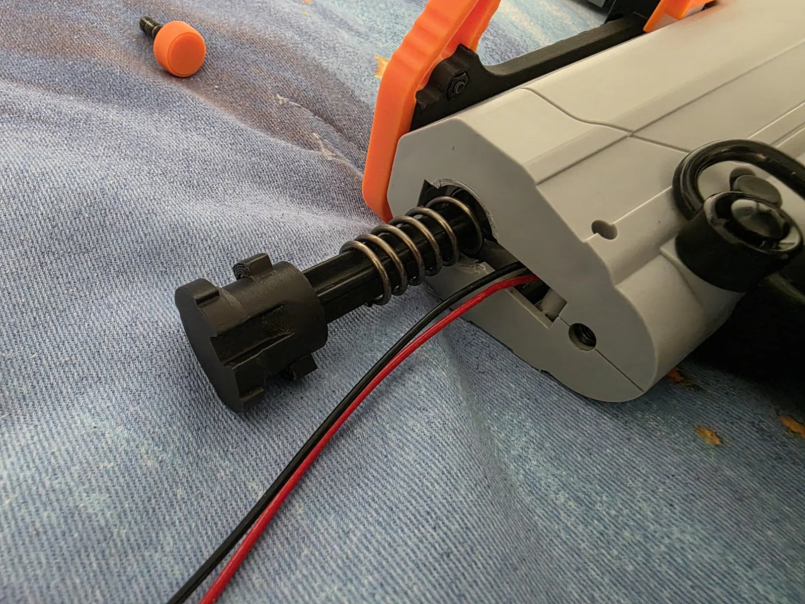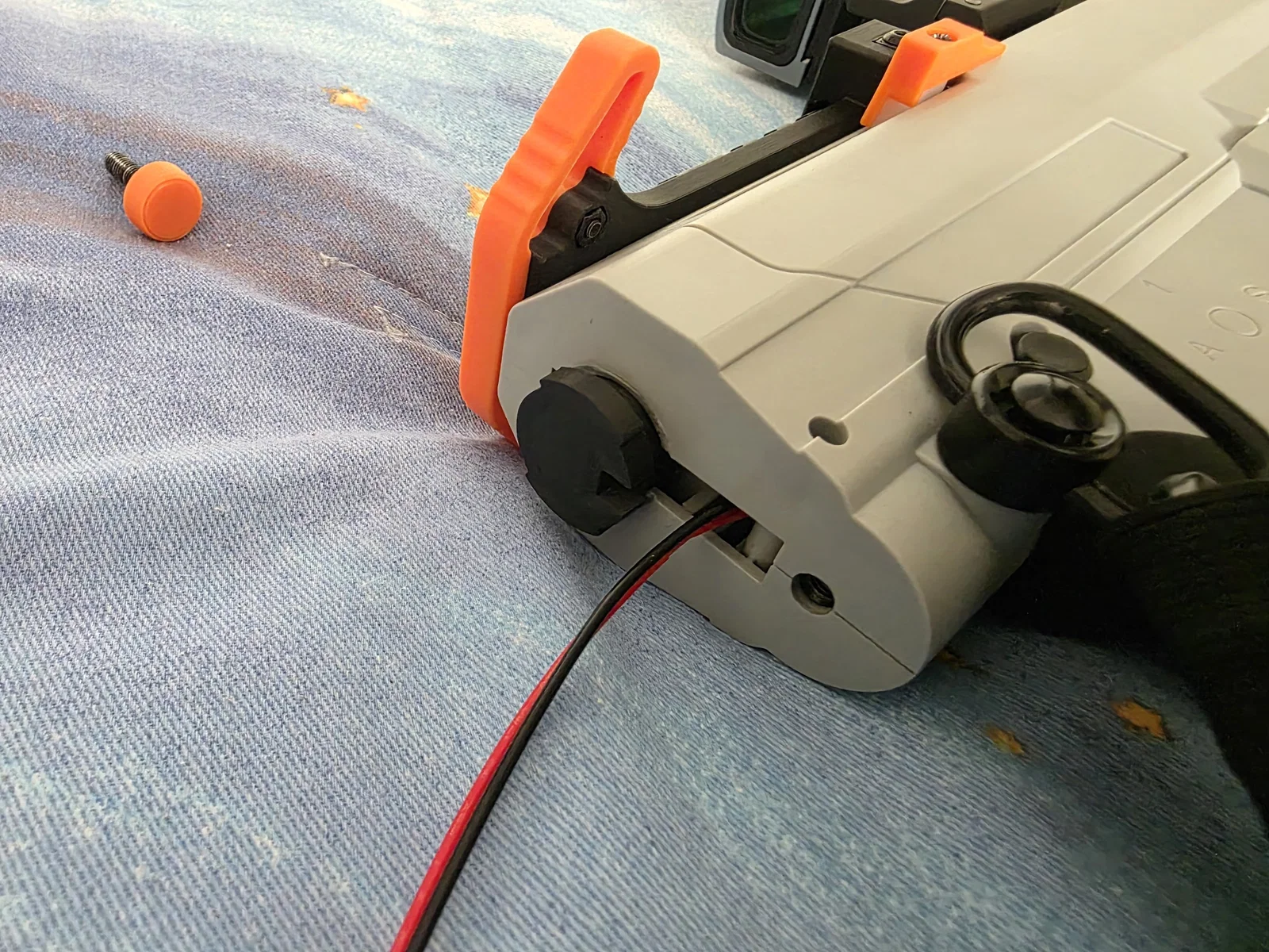 BK1s là một mẫu AEB tuyệt vời và là một chiếc blaster rất đáng chơi, nhưng lại có một điểm trừ cực kỳ khó chịu: phần chốt gắn báng súng (stock lugs) cực kỳ mỏng manh. Nhựa ở phần vỏ của BK khá mỏng và áp lực cao lên các chốt nhỏ này thường làm chúng bị gãy lìa sau một thời gian sử dụng. Nếu chẳng may chúng bị gãy, bạn sẽ gặp rắc rối lớn vì không còn cách nào để gắn báng vào blaster được nữa. Nhưng đừng lo, đây chính là linh kiện giúp bạn giải quyết vấn đề đó! Chỉ cần in bộ phận này ra, tháo vòng giữ lò xo báng súng và thay thế bằng linh kiện mới, bạn sẽ có thể gắn lại báng như bình thường! Nhân tiện, khe hở trên linh kiện là để đi dây điện nhé.