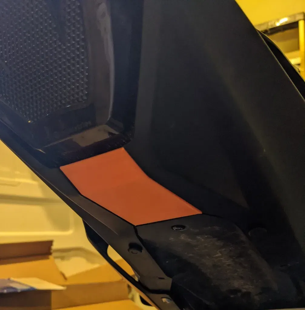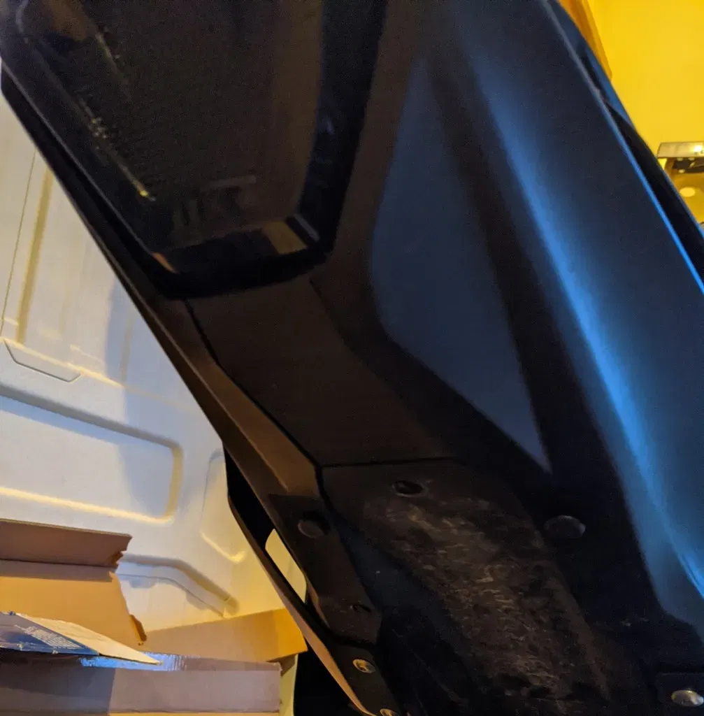 Sau khi in Tôi đã sử dụng plastidip đen, nó phù hợp hơn với các loại nhựa so với màu đen bóng bán. Bạn vẫn có thể thấy các lớp một chút, nhưng nó nằm dưới xe đạp. Bạn có thể mua một số bình xịt đắp và chà nhẵn, sau đó sơn nó thay vào đó.