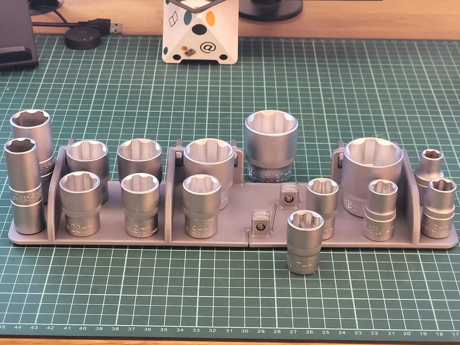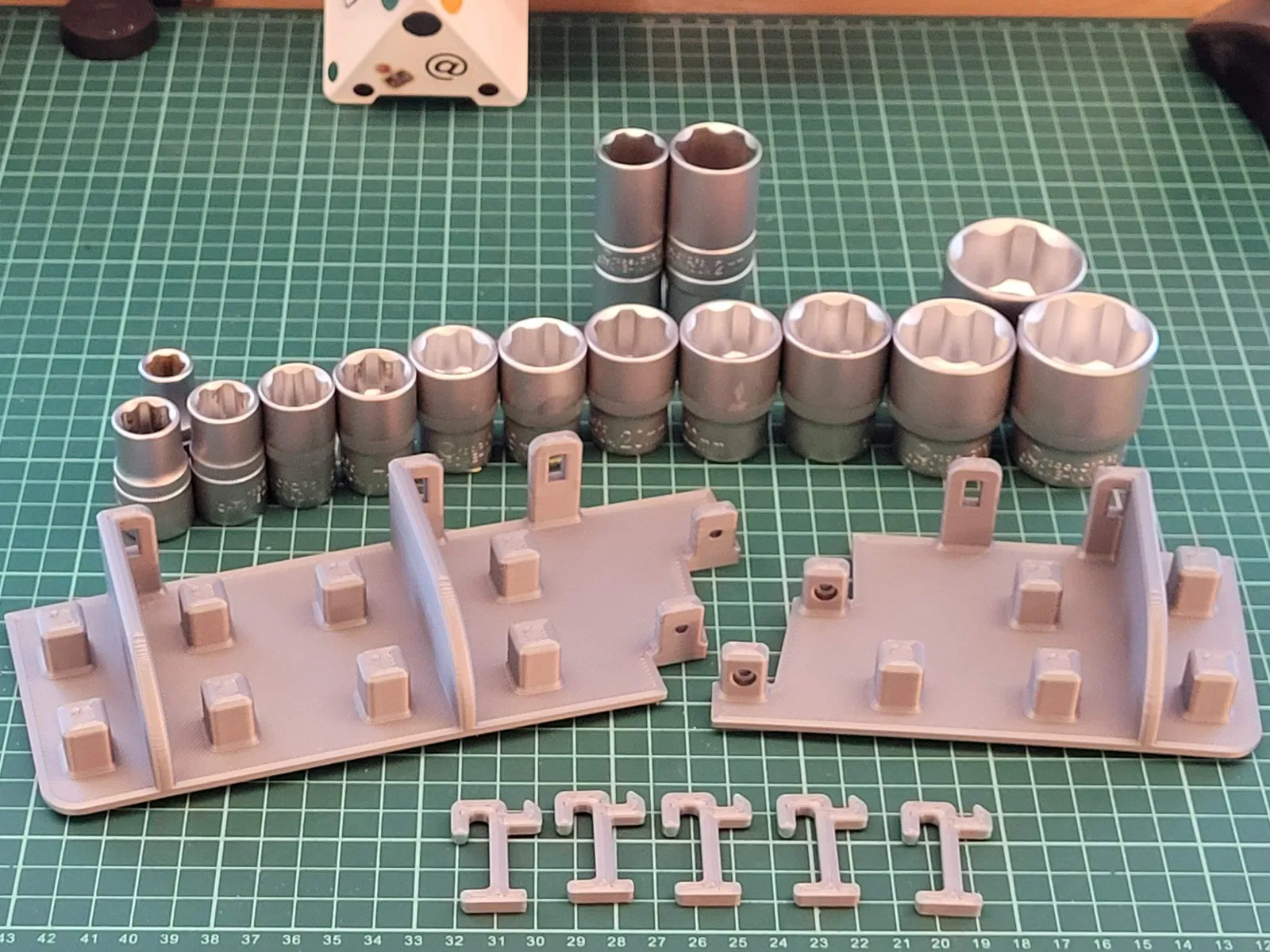 Vì vậy, tôi đã có một bộ Cờ lê Ratchet + đầu socket + các phần mở rộng và tôi muốn làm cho nó trông đẹp trên tường skadis của mình... vì vậy... đây là nó, mọi người, một bộ tổ chức cờ lê/công cụ nữa. - Kết nối cả hai bên bằng 2x bu lông M3 (dài 12mm). Kích thước này đến từ phụ tùng Prusa!