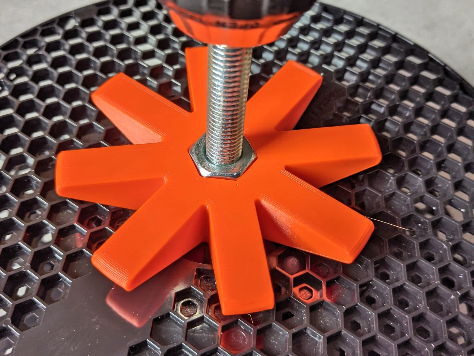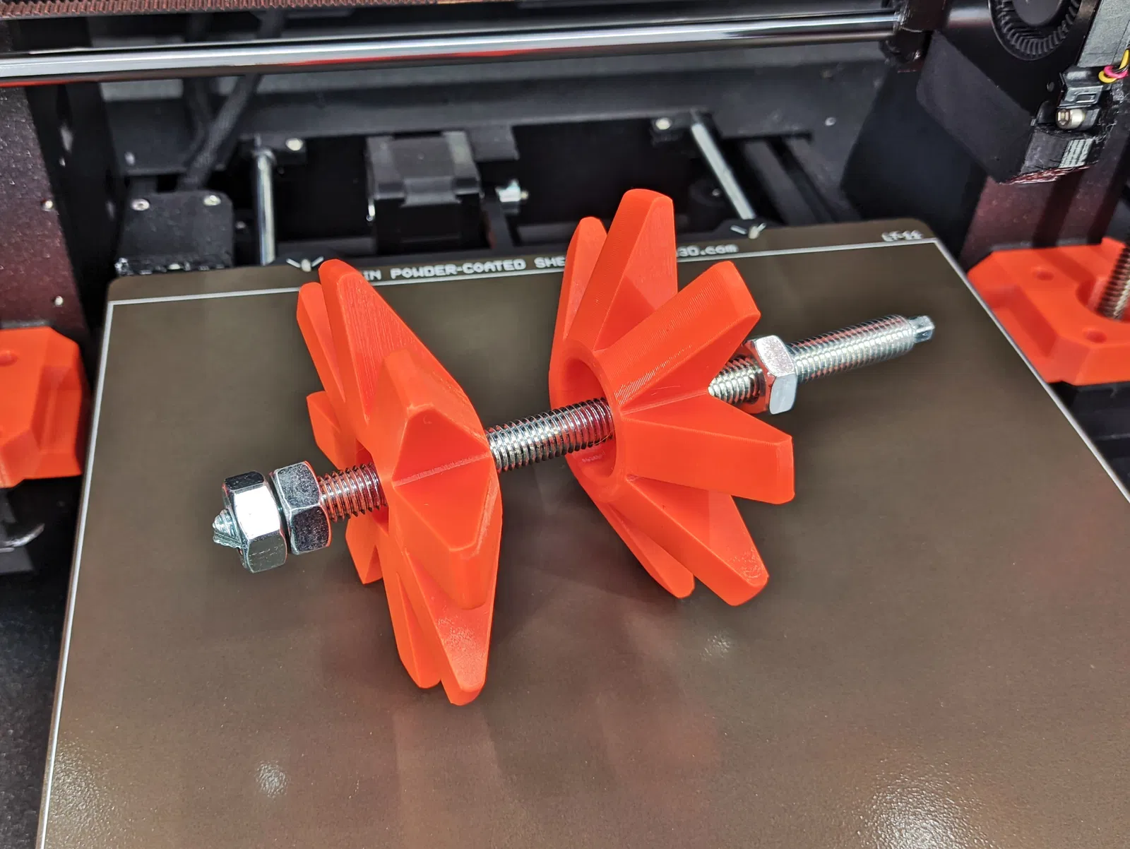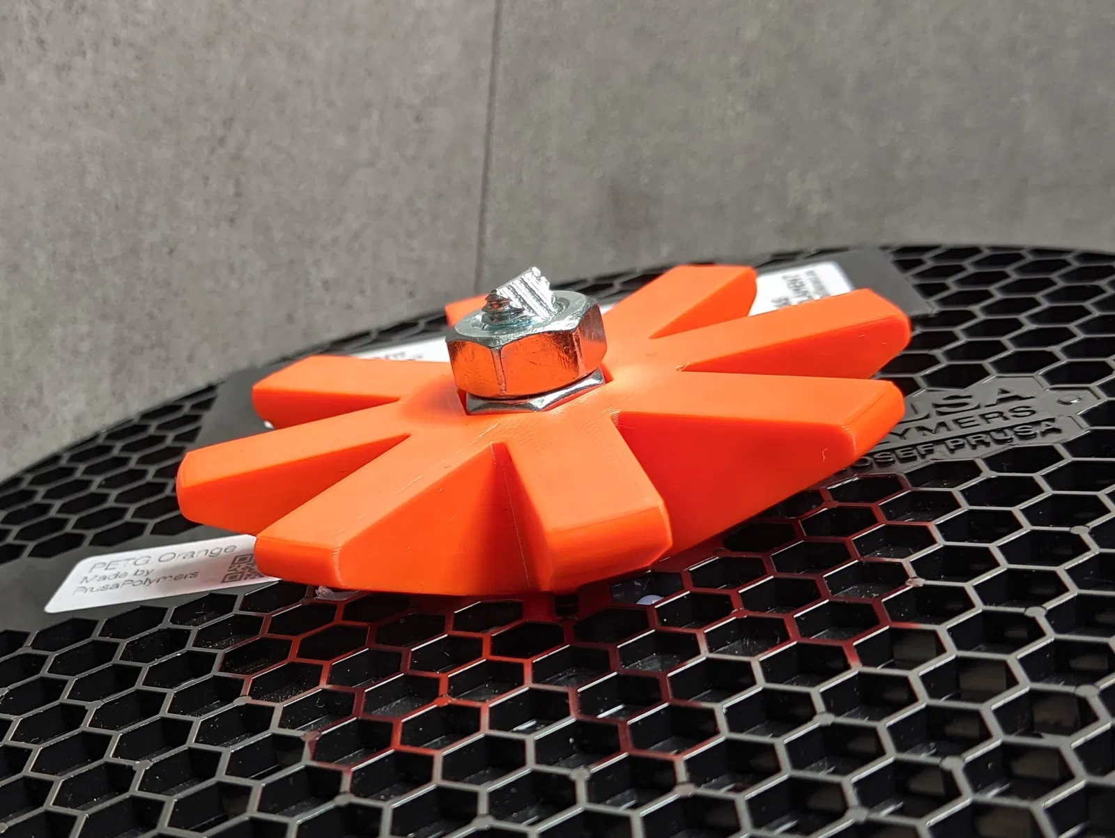 In bằng nhựa PLA hoặc PETG với độ phân giải 0,2mm. Không cần dùng support. Mẫu trong hình là phiên bản M10, mình in bằng nhựa Prusament PETG màu Prusa Orange.