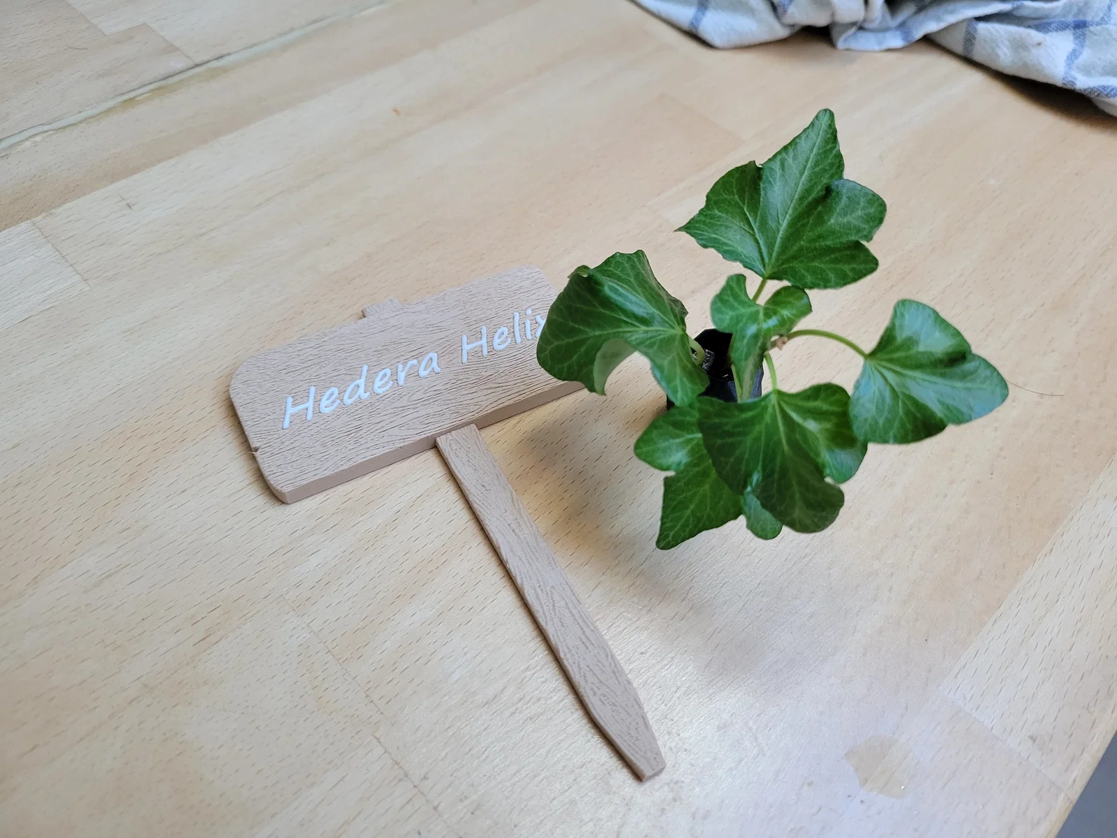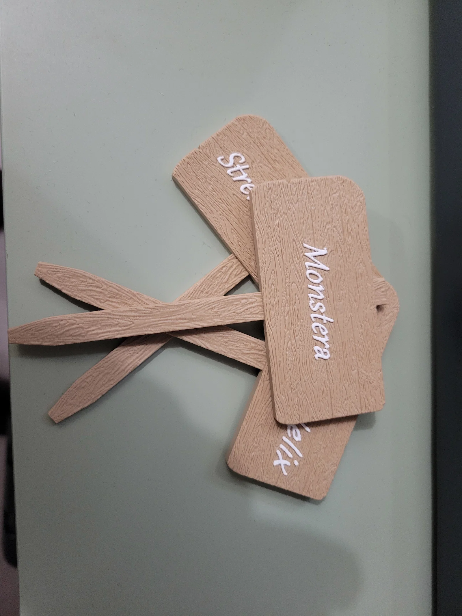Những tấm bảng nhỏ giả gỗ để cắm vào chậu cây giúp trang trí thêm sinh động.