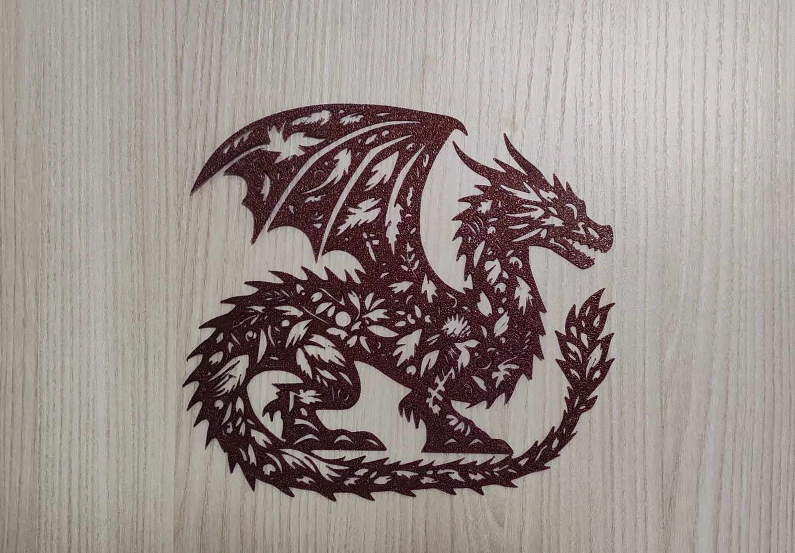 Điểm đặc biệt của thiết kế này chính là các họa tiết lá cây được đan xen khéo léo vào từng bộ phận của chú rồng, từ đôi cánh cho đến cái đuôi dài mềm mại. Sự kết hợp giữa hình tượng dũng mãnh của rồng và nét dịu dàng của hoa lá tạo nên một tổng thể hài hòa, vừa mạnh mẽ lại vừa nghệ thuật. Sản phẩm sau khi in xong có độ phẳng cao, dễ dàng gắn lên tường bằng băng dính hai mặt hoặc móc treo, phù hợp để decor phòng khách, phòng làm việc hoặc góc học tập.