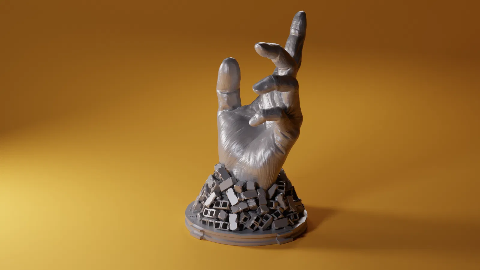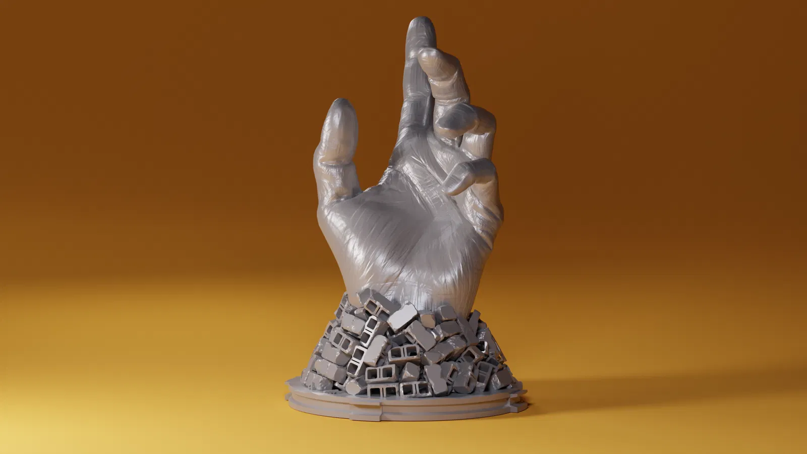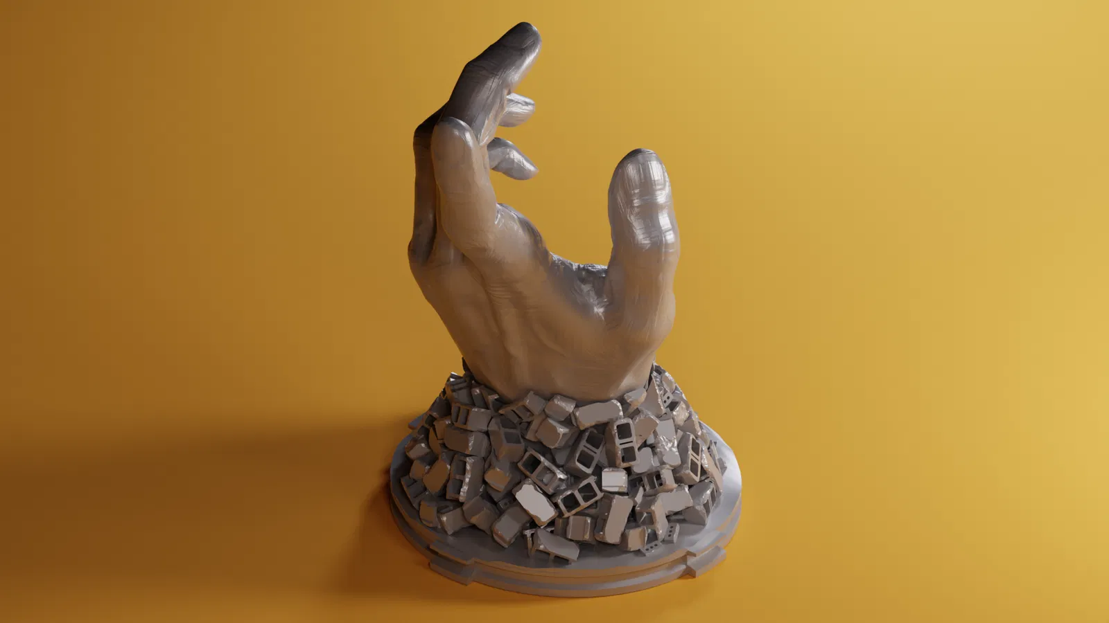 Một bàn tay giữa đống đổ nát của một ngôi nhà. với một cử chỉ giúp đỡ.