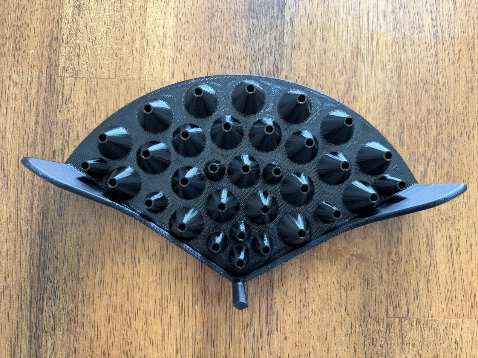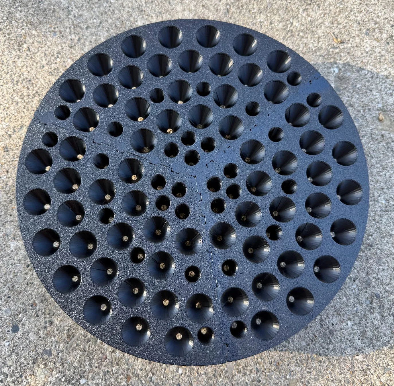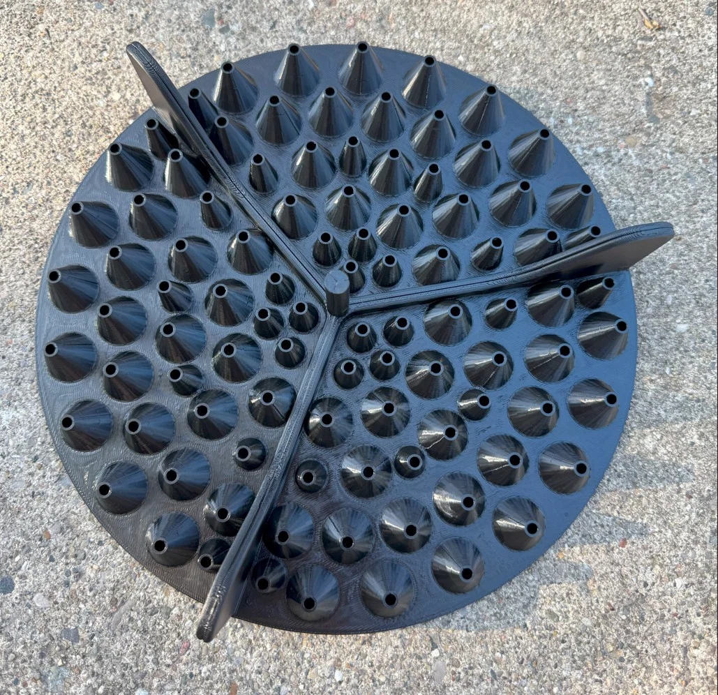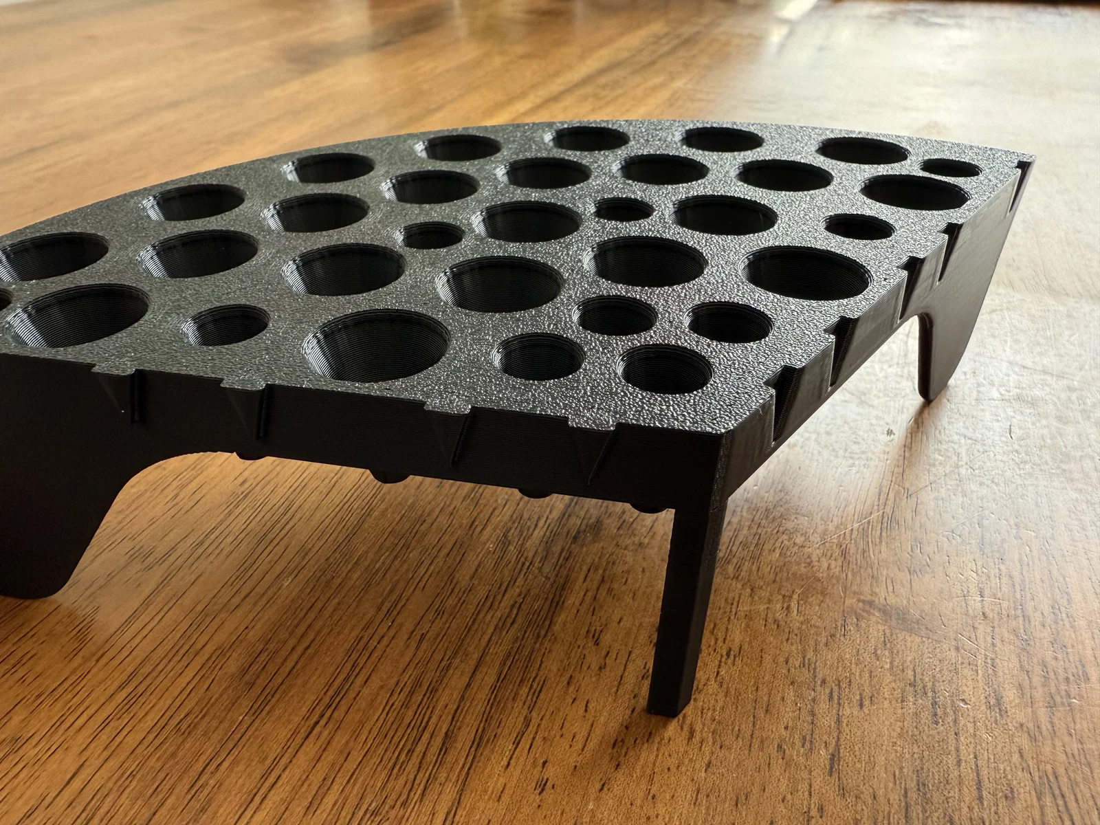 Hướng dẫn in: Không cần sử dụng support. In file Grid_Guard_10in_Third_w_center_foot.stl ba lần rồi dán chúng lại với nhau để hoàn thiện tấm lọc cặn. Mình đã in bằng nhựa ABS với độ đặc (infill) 30% (tuy nhiên với số lượng tường và độ phân giải mình chọn thì nó tương đương với 100% infill), tổng cộng tốn 174 gram nhựa cho cả ba phần.