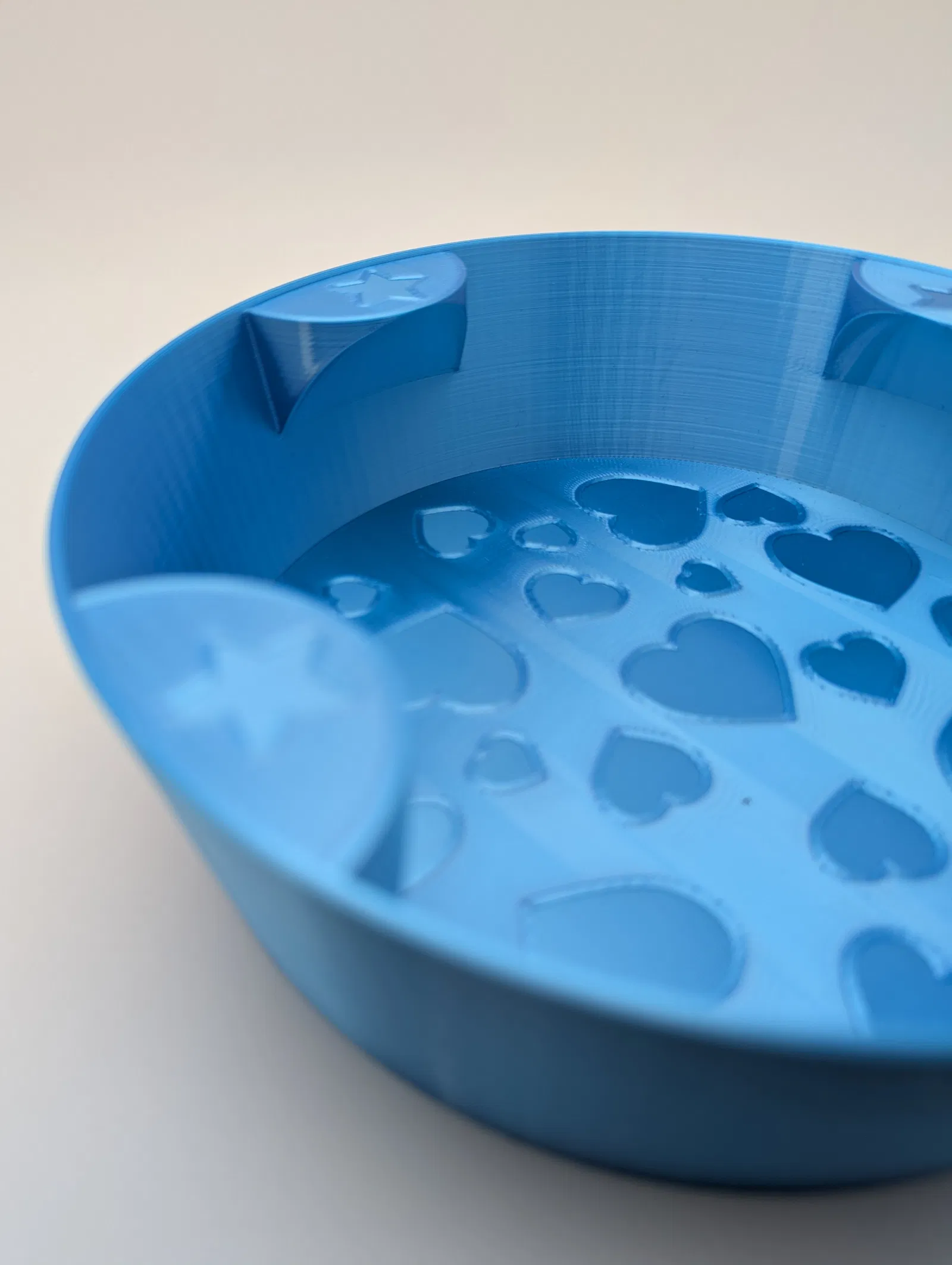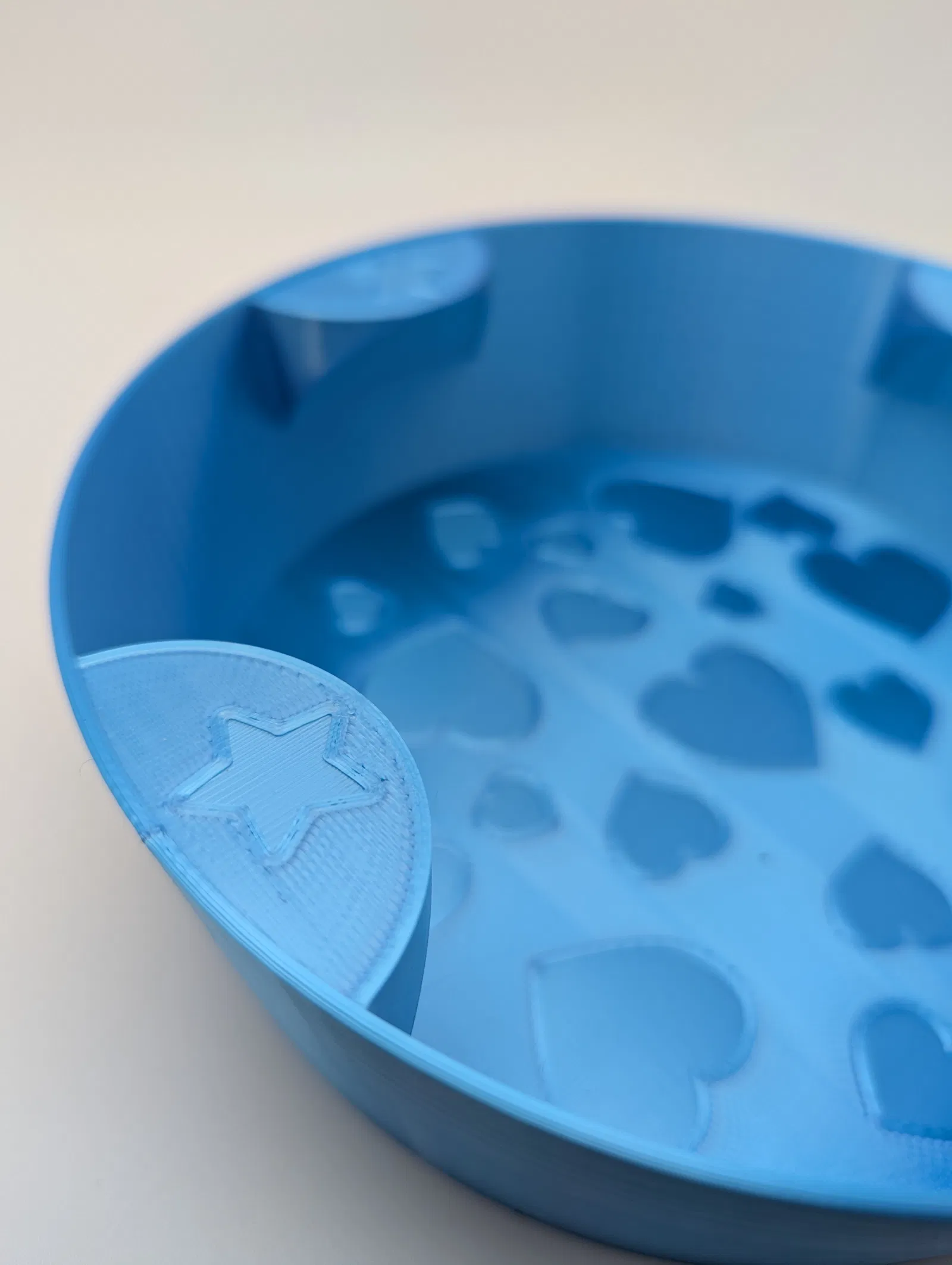 Chiếc hồ bơi mini xinh xắn dành cho búp bê Barbie, thiết kế nổi bật với họa tiết trái tim ở đáy và các ngăn ngôi sao ở thành hồ. Sản phẩm rất dễ in, không cần support, phù hợp cho các bé chơi hoặc chụp ảnh mô hình.