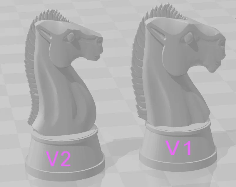 LƯU Ý: Đây không phải là quân cờ gốc nhưng có cùng tỷ lệ và đế tương tự. Có lẽ tốt nhất là bạn nên in hai quân để thay thế, thay vì để hai quân khác nhau cùng làm quân Mã.
