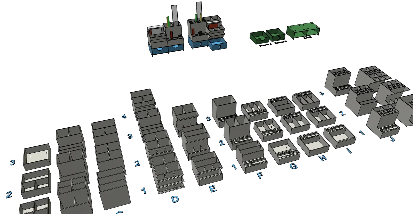 Bộ khay đựng đồ dùng văn phòng, ống cắm bút để bàn, in 3D dễ dàng không cần support