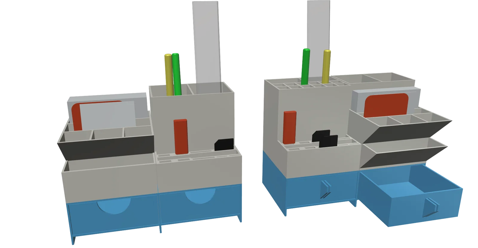 Mô hình khay đựng đồ để bàn in 3D vô cùng tiện lợi, dễ dàng in mà không cần support. Sản phẩm có không gian rộng rãi để bạn sắp xếp đồ dùng học tập, văn phòng phẩm và các phụ kiện như USB, thẻ nhớ với nhiều cách kết hợp linh hoạt.