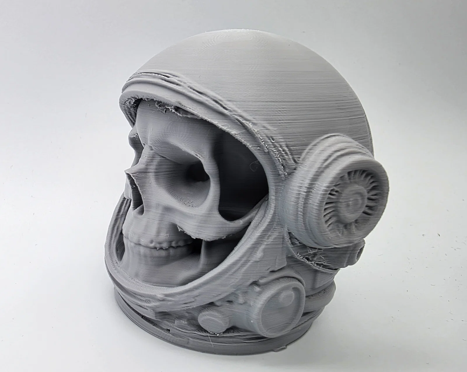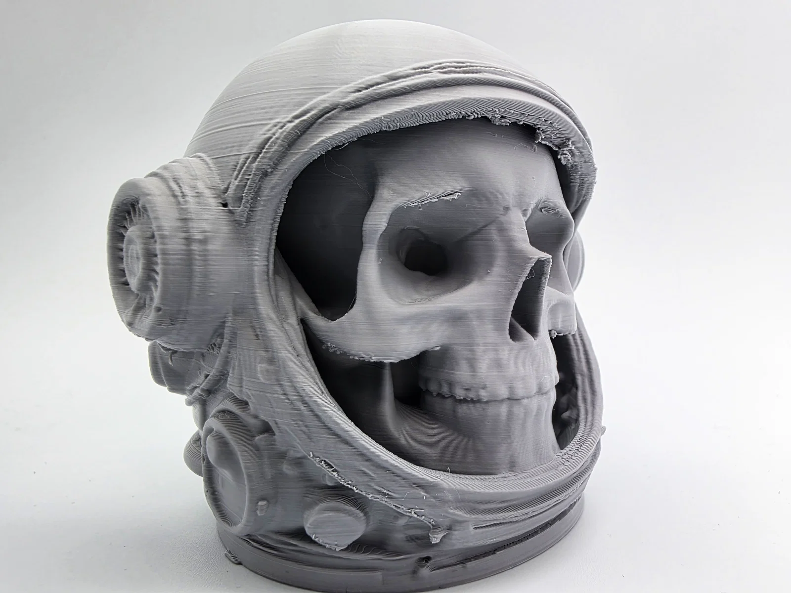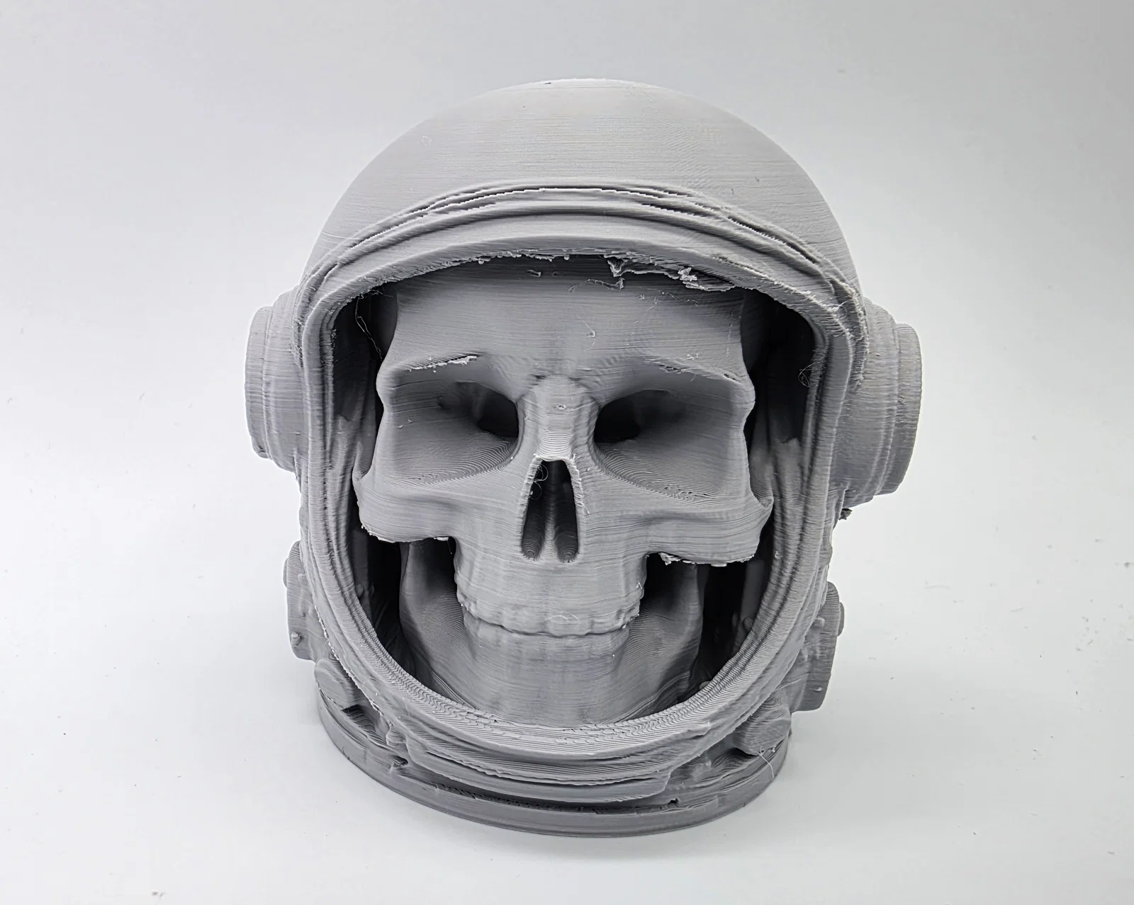 Mô hình đầu phi hành gia với gương mặt hộp sọ đầy ám ảnh—chi tiết, rùng rợn và cực kỳ hoàn hảo cho các bộ sưu tập theo phong cách khoa học viễn tưởng hoặc kinh dị.