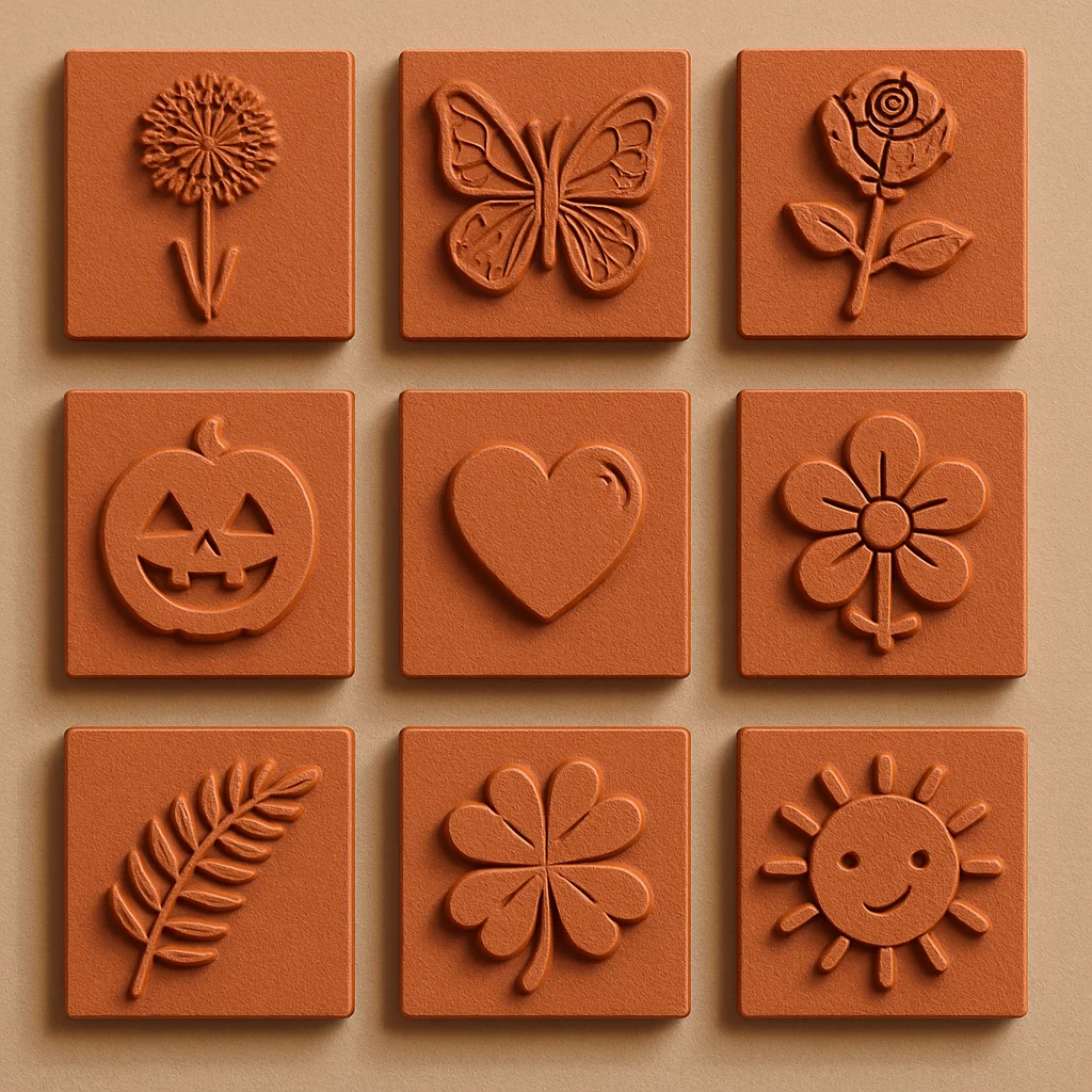 Nếu bạn là người yêu thích những món đồ thủ công tự làm (DIY) hoặc muốn thêm dấu ấn cá nhân vào các tác phẩm của mình, thì bộ mẫu Stamped 0.1 này chắc chắn là lựa chọn không thể bỏ qua. Đây là tập hợp các con dấu 3D với thiết kế tinh tế, bao gồm các hình ảnh gần gũi như hoa hồng, hoa hướng dương, cánh bướm, trái tim, bí ngô, chiếc lá và mặt trời cười. Mỗi con dấu đều được khắc nổi một cách tỉ mỉ trên bề mặt hình vuông, giúp bạn dễ dàng cầm nắm và đóng dấu lên đất sét, bánh quy, xà phòng handmade hoặc giấy note một cách sắc nét nhất.