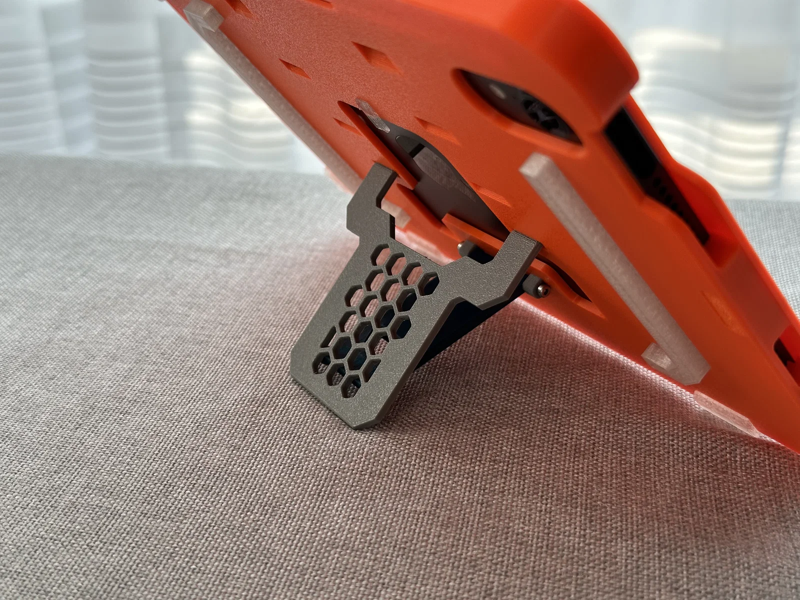- Phần ốp in bằng nhựa PETG, các phần đệm (Bumpers) in bằng TPU