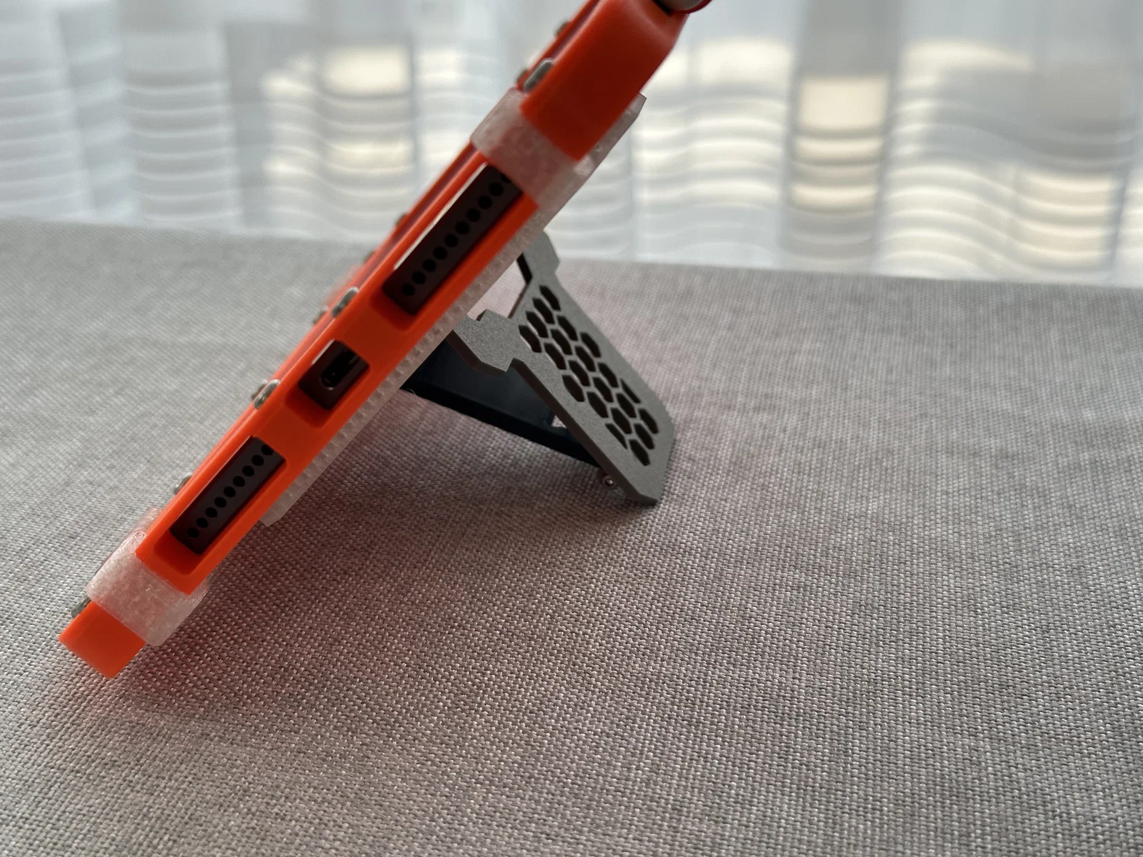 Về chi tiết kỹ thuật: cổng sạc vẫn cắm thoải mái với hầu hết các loại cáp tiêu chuẩn, và mình cũng chưa thấy hiện tượng cản sóng kết nối nào. Để lắp ráp, bạn sẽ cần 14 con ốc M38 mm loại T10 threadforming và 4 con M225. Lưu ý quan trọng: bạn phải cắt bớt ốc M2 vì iPad mini rất mỏng, nếu không cắt sẽ làm hỏng vỏ nhựa (mình cần phần không có ren ở gần đầu ốc để tạo khớp xoay mượt mà). Các lỗ dọc theo cạnh dài bên cạnh Apple Pencil là để dành cho cảm biến ánh sáng, nên mọi thứ vẫn hoạt động bình thường.
