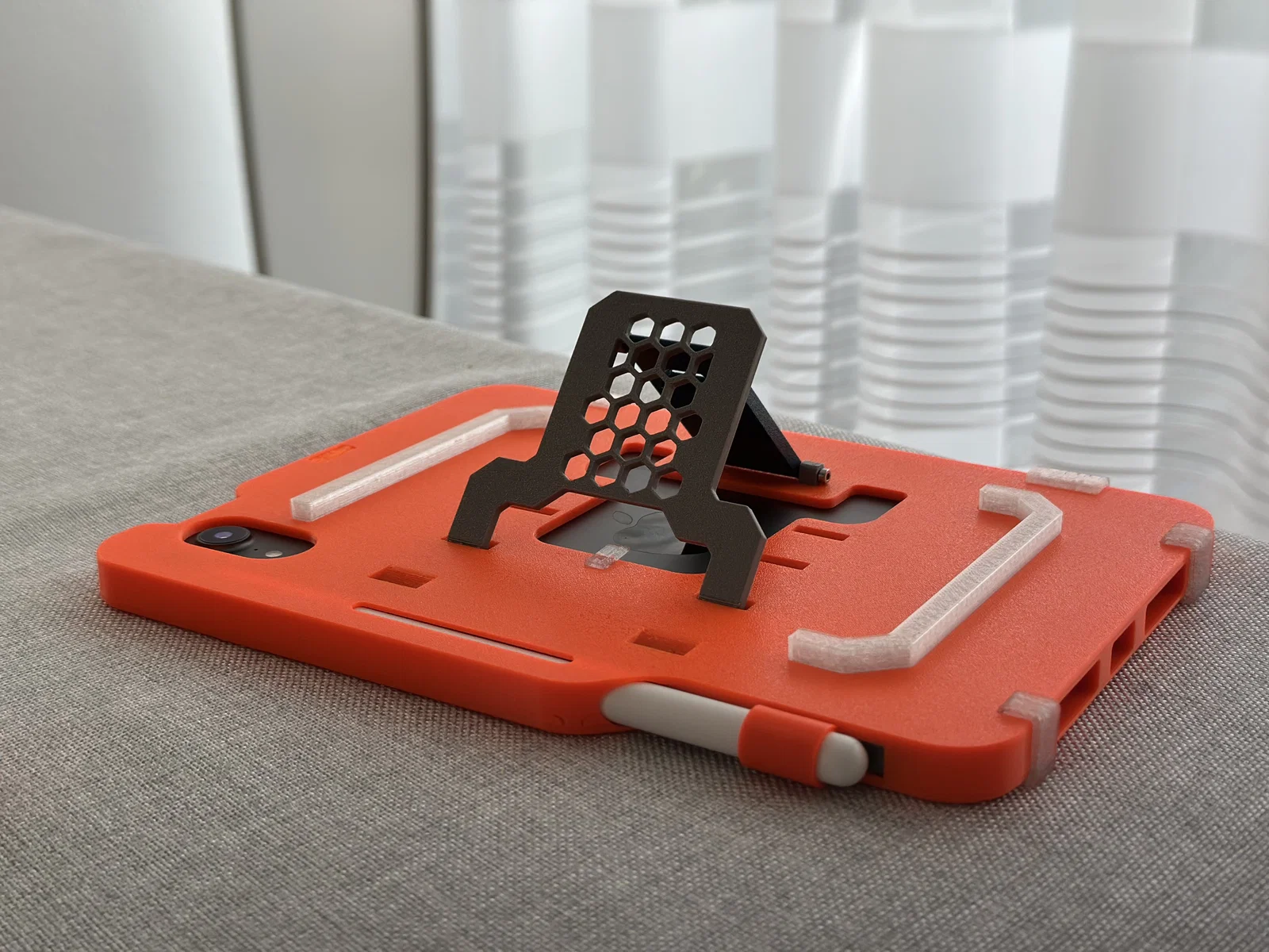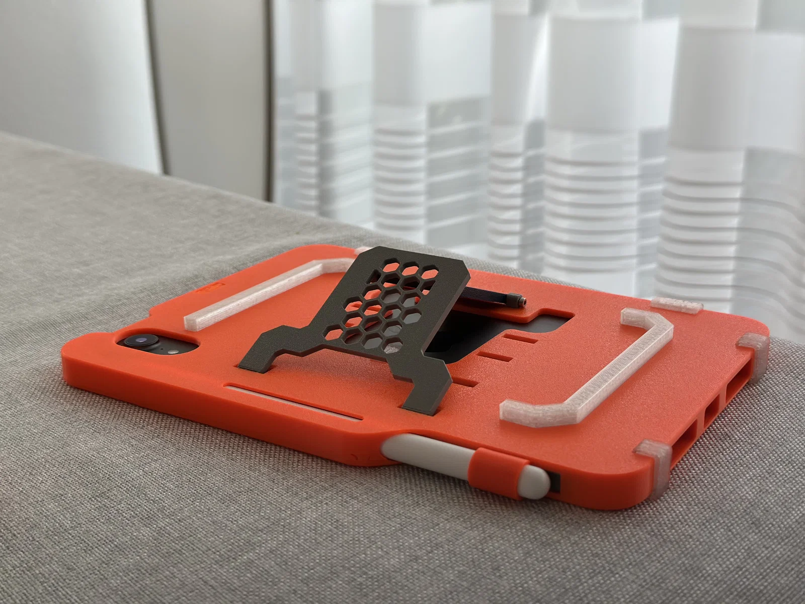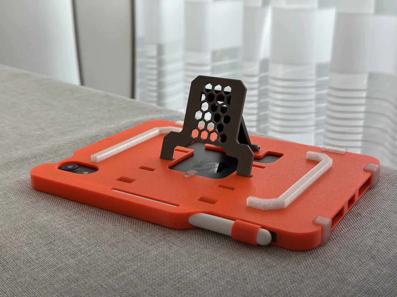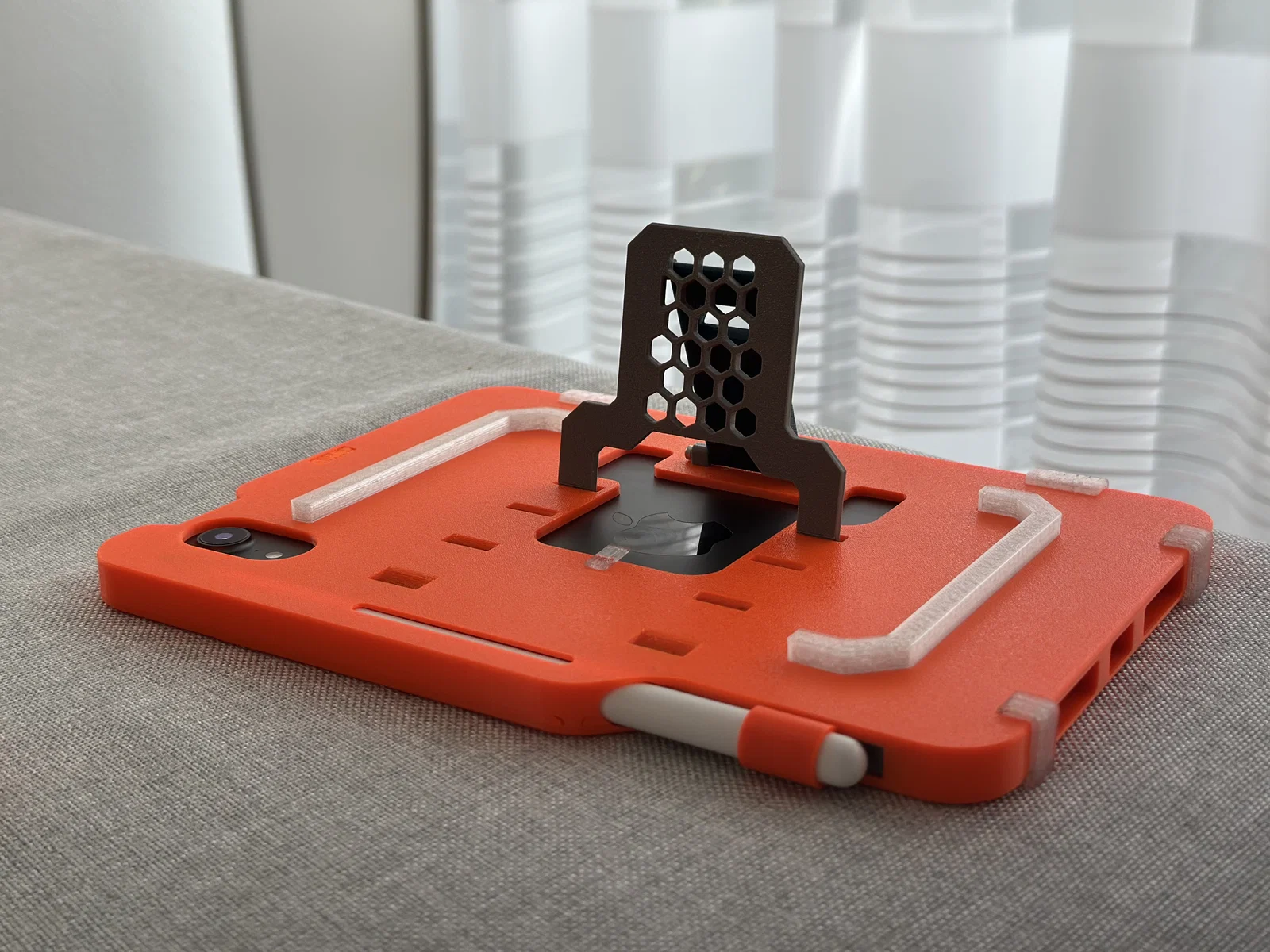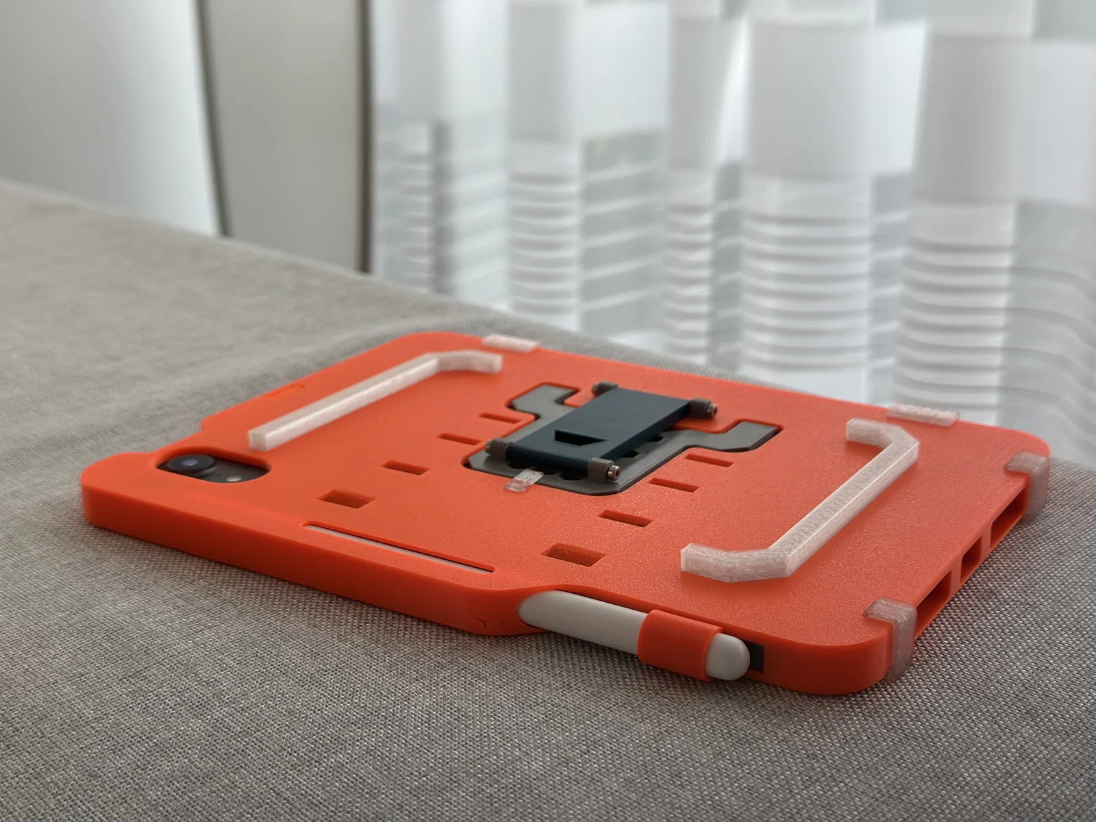 Sau nhiều lần chỉnh sửa, mình đã dùng chiếc ốp tự thiết kế này được gần một năm và cảm thấy rất hài lòng với độ vừa vặn của nó. Dù từng có lúc quay lại dùng ốp Folio chính hãng, nhưng rồi mình vẫn thấy chiếc ốp màu cam này là “chân ái” nhờ vẻ ngoài hầm hố và chắc chắn. Dù mình chưa thử “ném” máy để kiểm tra độ bền, nhưng nó chịu va đập rất tốt, kết hợp thêm miếng dán bảo vệ màn hình khi đi du lịch là yên tâm tuyệt đối. Còn Apple Pencil? Nó nằm gọn gàng đúng vị trí, không còn cảnh phải bới tung cả balo để tìm nữa.