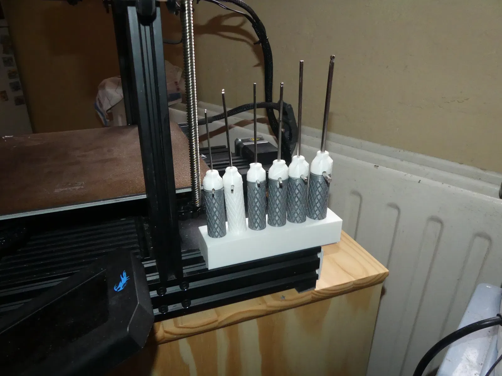 Bởi vì các inbusy có tay cầm theo Allen Key Handle của tác giả BaGooN | Tải xuống mô hình STL miễn phí | F3D.com không vừa với ngăn kéo của máy in ENDER 3, tôi đã mô hình hóa một giá đỡ có thể lắp vào khung của máy in. Tôi đã mô hình hóa trong SketchUp và cung cấp các tệp .skp và .stl.