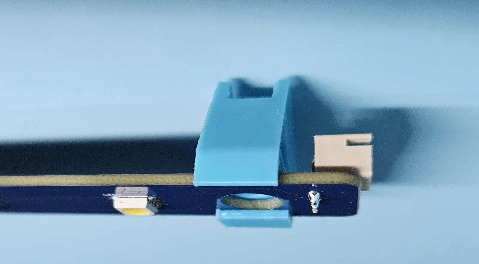 Thiết kế này giúp dải đèn LED nằm gọn gàng và tránh xa đường di chuyển của đầu đùn (extruder).