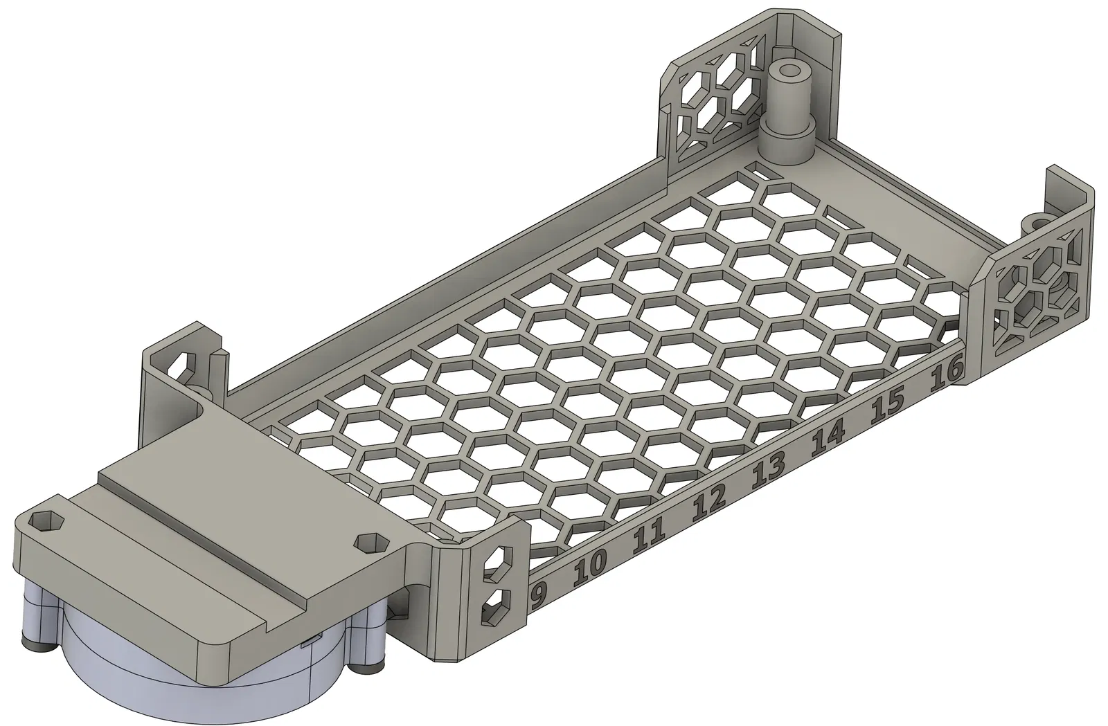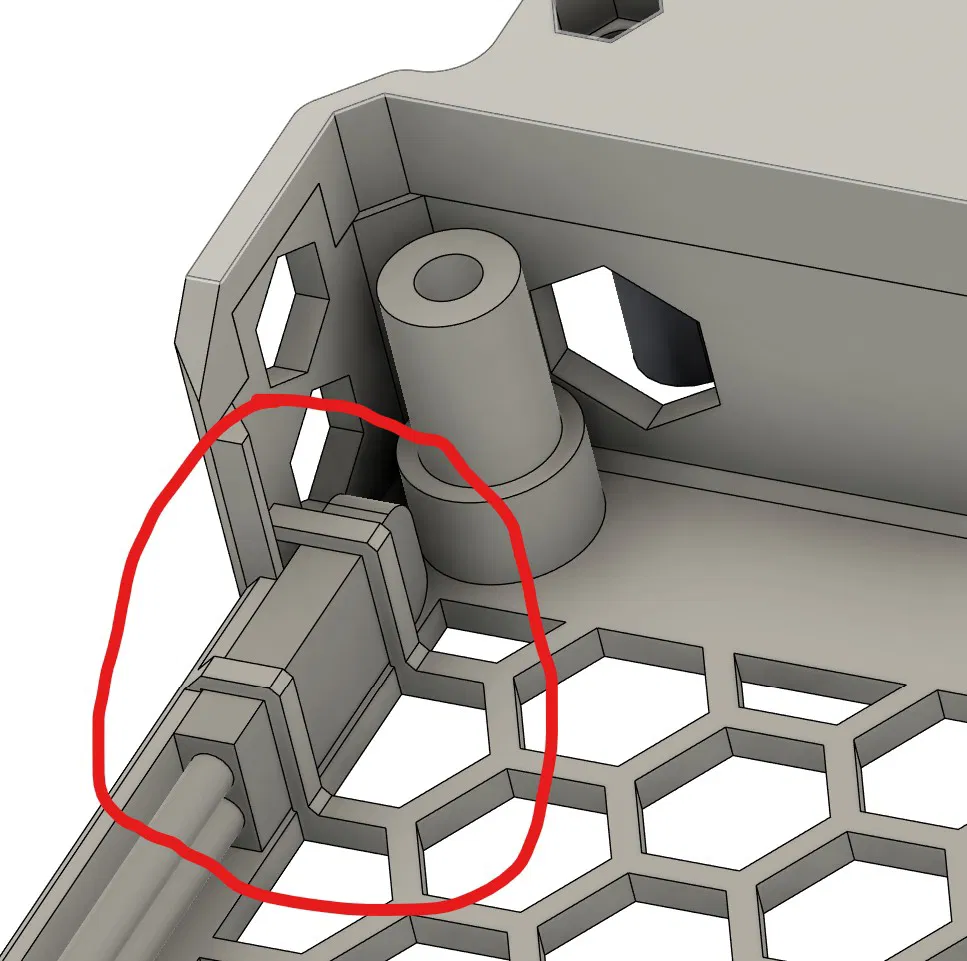 Cần sử dụng vật liệu chịu nhiệt cao như ASA/PC, v.v. cho bản in này do nhiệt lượng truyền qua khung nhôm nơi các tấm nhiệt được bắt vít vào.