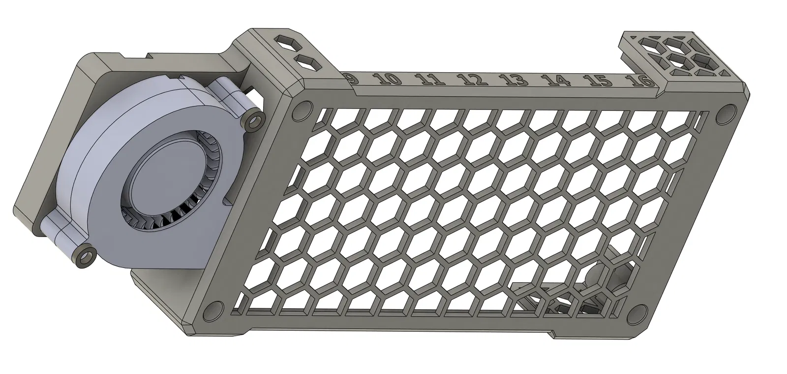 Tôi đã quyết định thêm một miếng tản nhiệt cho MCU và sử dụng quạt thổi 5015. Tôi đã thiết kế lại nắp che bàn nhiệt gốc vì nắp zin có độ thông gió rất hạn chế.