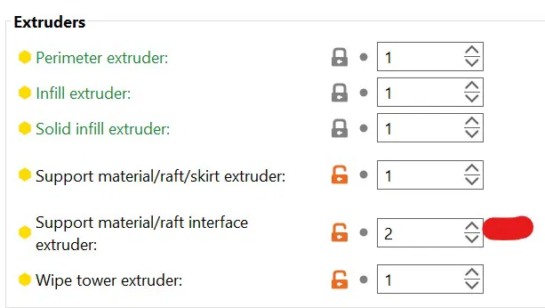 Bật 'Interface shells' trong mục Print Settings > Multiple Extruders > Advanced.